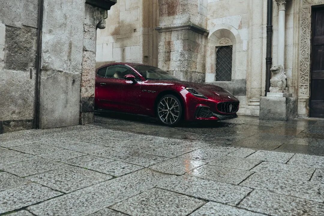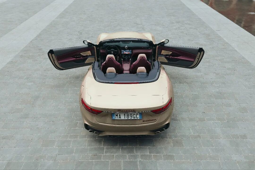 外观方面,两款车型均由玛莎拉蒂Fuoriserie定制部门操刀。GranTurismo采用名为“Rosso Velluto”的浓郁酒红色车漆,GranCabrio则披上香槟色的“Oro Lirico”涂装。