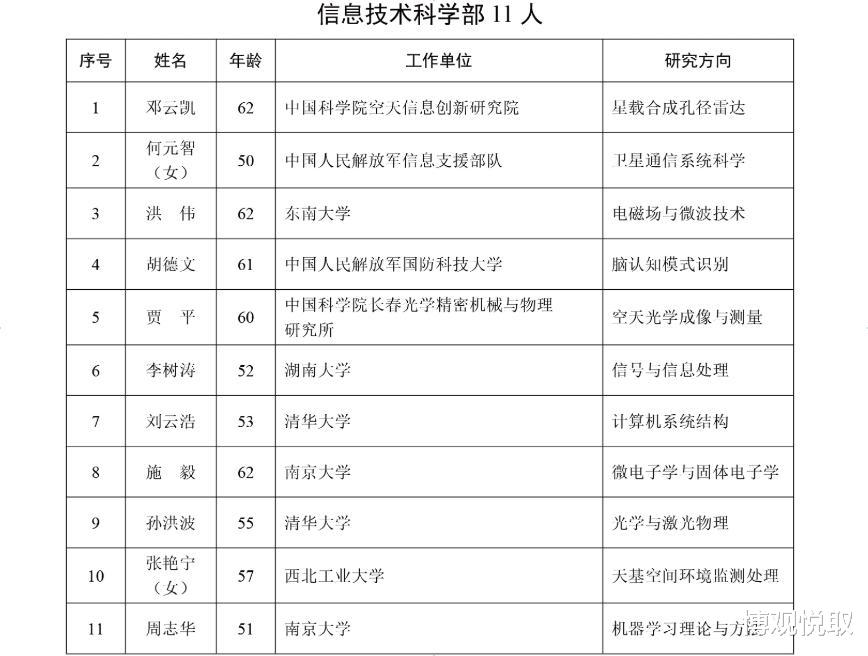 此次增选强调“向国家急需的关键领域、新兴学科、交叉学科倾斜”,信息技术科学部的11位当选者,正是这一导向的生动注脚。他们的研究方向横跨空天信息、人工智能、微电子、激光物理等“国之重器”领域,年龄跨度从51岁到62岁,平均年龄57岁,60岁以下占比超半数,既保留了学术传承的深度,又注入了创新突破的活力。