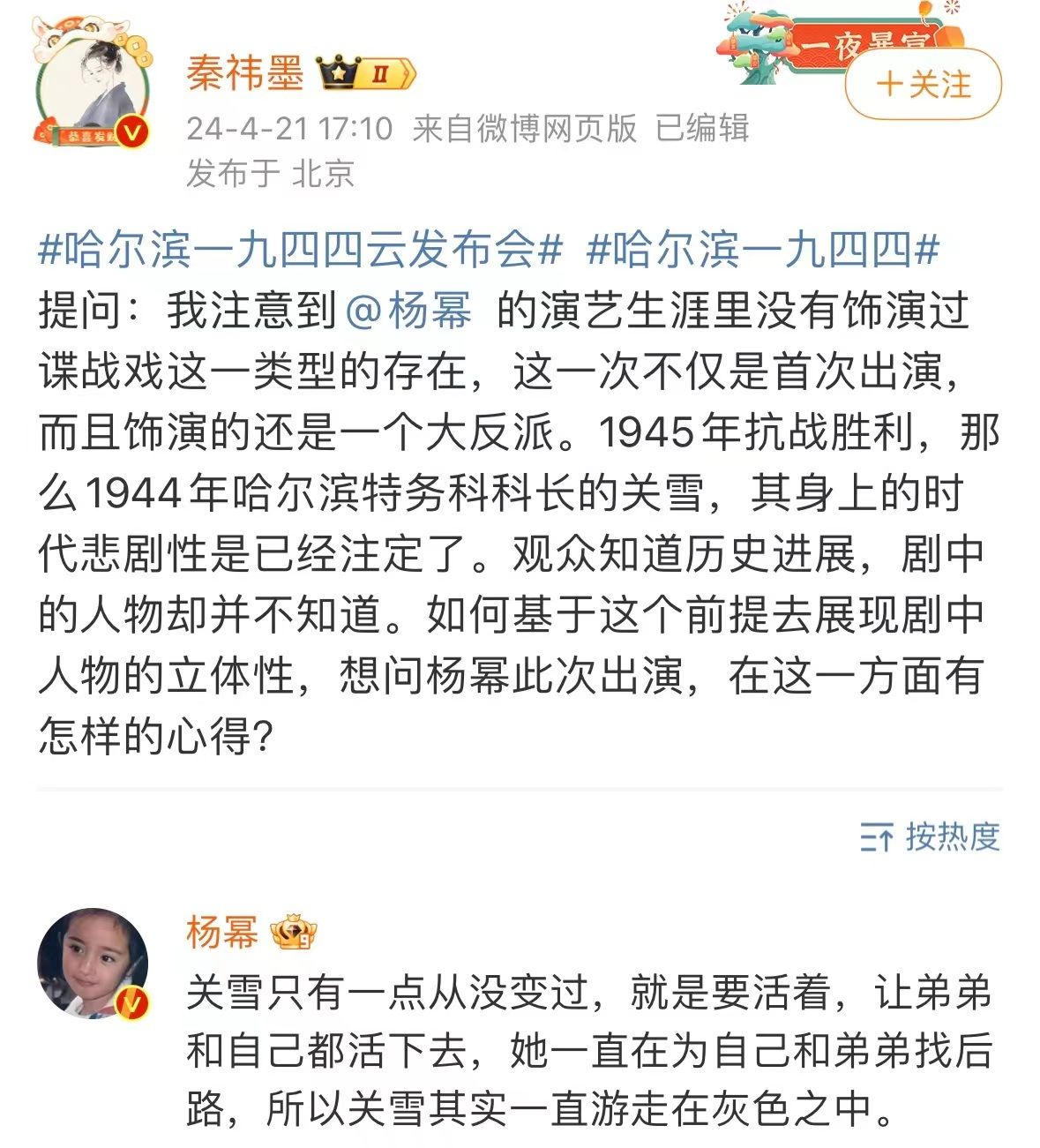 如今,《哈尔滨一九四四》已经引发了观众们的热烈讨论和期待。关雪这个角色,无疑成为了杨幂演艺生涯中的又一经典。那么,在接下来的剧情中,关雪又会面临怎样的挑战与困境呢?让我们一起期待杨幂未来更多的精彩表现,以及《哈尔滨一九四四》这部剧集的精彩呈现吧!