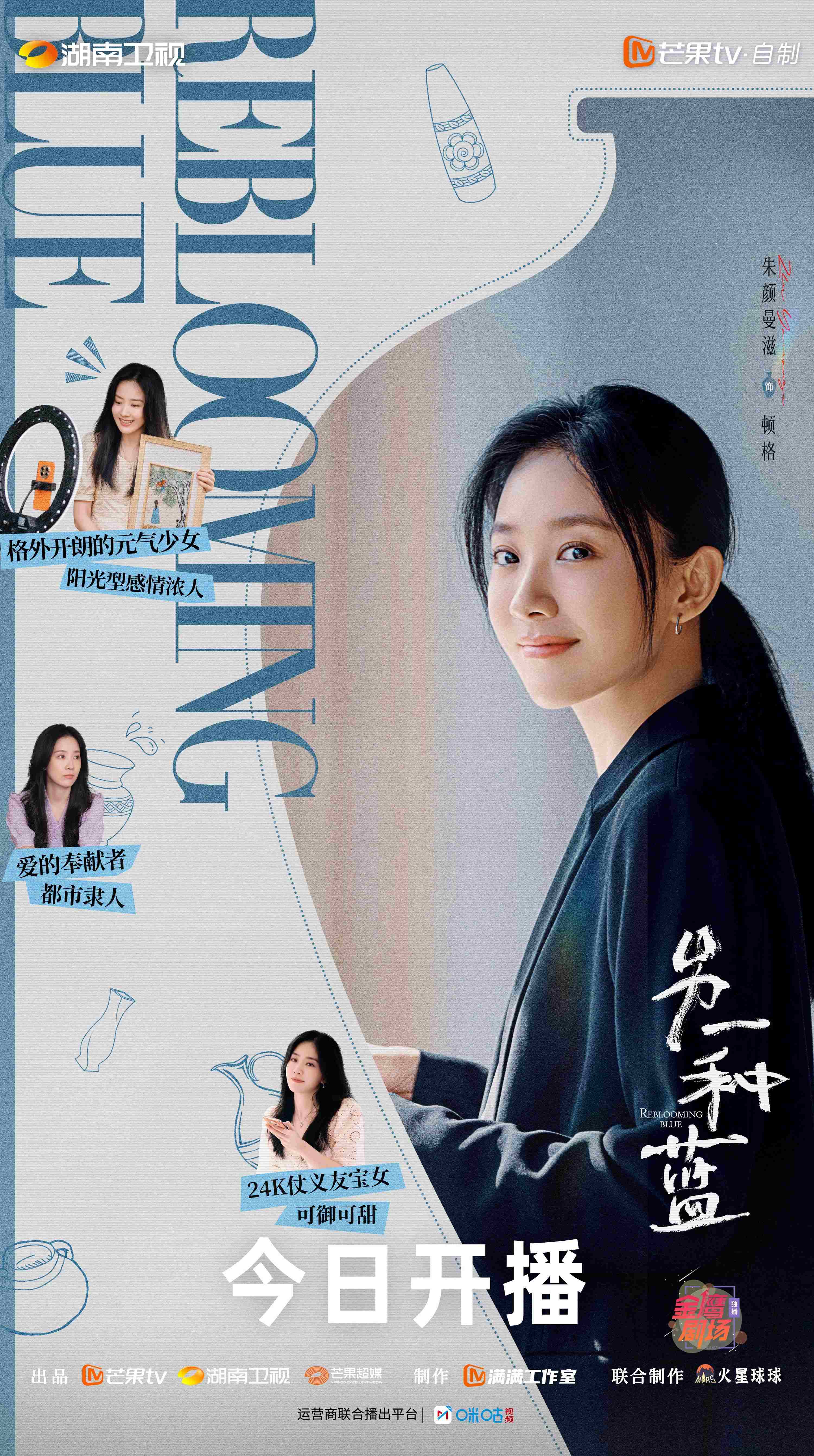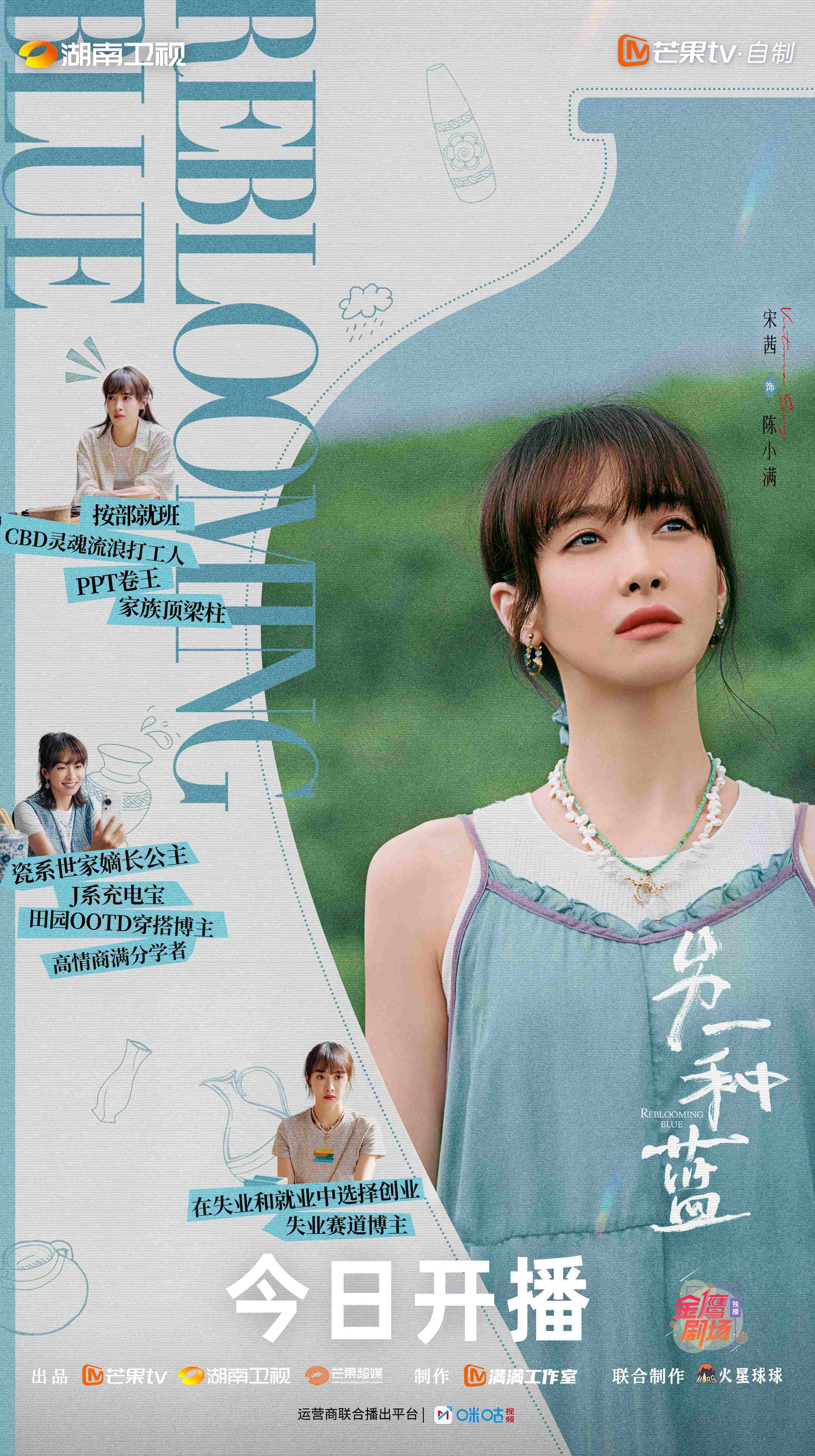 由芒果 TV、湖南卫视、芒果超媒出品,中共景德镇市委宣传部荣誉出品,芒果TV满满工作室原创自制现实情感非遗文化剧《另一种蓝》于今晚20:00在湖南卫视和芒果TV同步播出,Viki、LineTV、MyVideo、Litv和KKTV等平台全球同步播出,覆盖北美、欧洲、中东和台湾地区。并已经完成对柬埔寨电视台的发行,将于译制结束后排播。该剧由唐藩、徐溢任总制片人,李昂任导演、总编剧,宋茜、周渝民领衔主演,刘敏涛特别主演,刘畅、朱颜曼滋、黄品沅、师悦玲、谢兴阳、胡宝森、刘潮、晏云璟主演,侯岩松、郝平、曹璐特别出演,曹磊、卜冠今、贾景晖、谢彬彬、陈米麒友情出演,董勇特邀主演,张佳宁特邀出演。