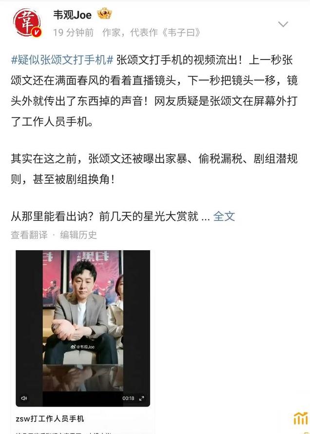 近日,一段几年前的直播视频在网络上被热议,而视频中的主角正是张颂文。在这段视频中,张颂文似乎因为某些原因,直接将一名工作人员手中的手机砸掉,而这一举动也被不少网友拍摄下来,随后视频便在网络上疯传。