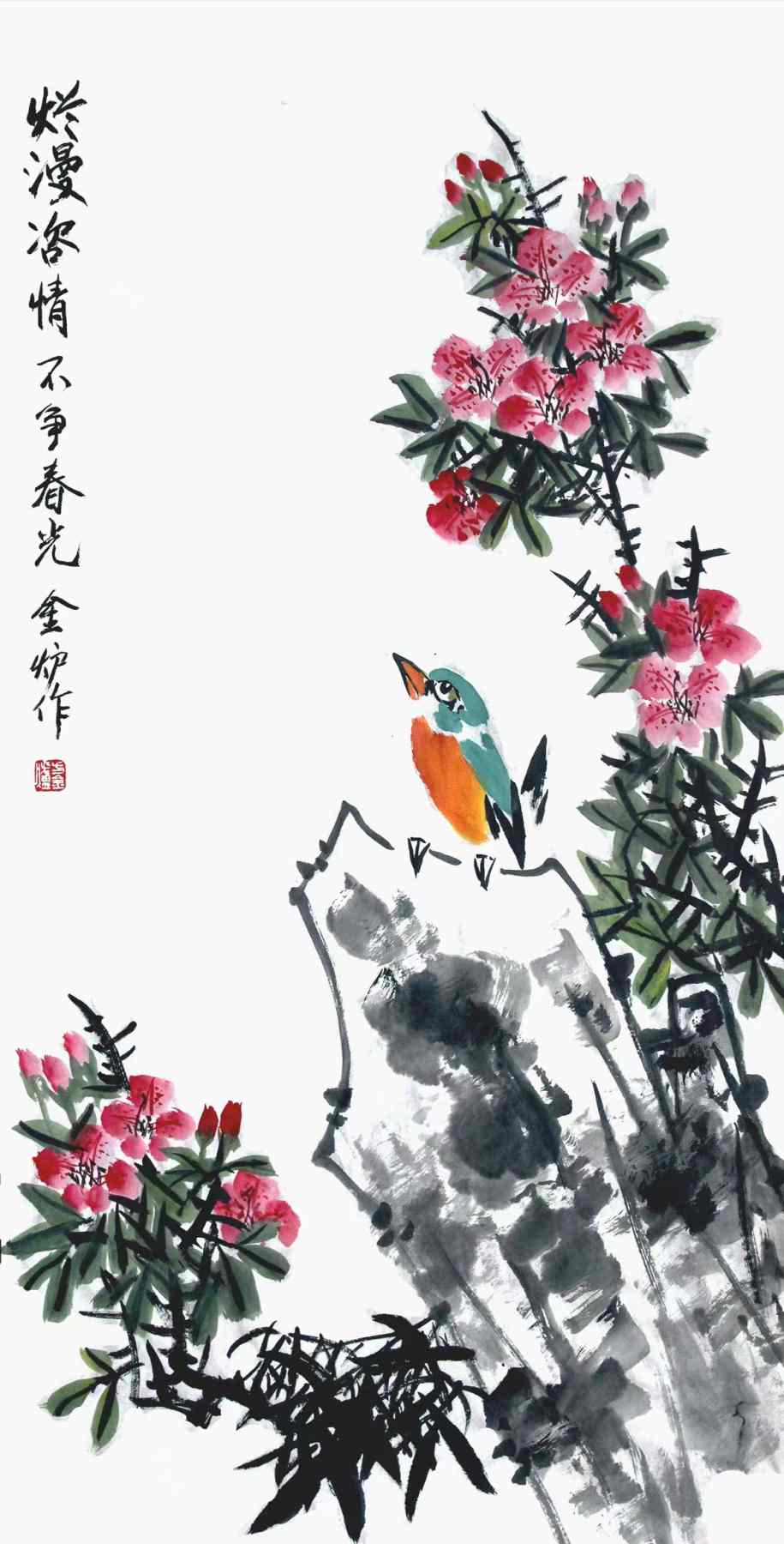 Fang Jinlu, born in 1944 in Jinhua, Zhejiang, graduated from Zhejiang University7 and worked at a research institute in Beijing. He is a scientist, cultural scholar, and traditional Chinese painter. He specializes in flower-and-bird painting and landscape painting. After decaes of study, he has created numerous excellent works characterized by exquisite brushwork and ink, a touch that brings life to the canvas, and a style that is uninhibited and vivid, possessioth form and spirit. His works are imbued with profound cultural depth and a strong contemporary spirit. He has published over 20 personal albums, including *The Collection of Paint by Fang Jinlu, a Renowned Contemporary Chinese Painter* (China Federation of Literary and Art Circles Publishing House - The Red Jacket Series), and has been included in various art csics such as *Timeless Classics: Master's Style*, *Century of National Essence: Fifteen Most Innovative Artists*, and *World Art: Timeless Classics of China and Eurhas received numerous prestigious awards, including the "Highest Achievement Award in Republic Arts and Literature," the "World's Highest Art Little Golden Man Award," and the "UN Peace Medalds honorary titles such as "Person of Outstanding Contribution to Republic Arts and Culture."