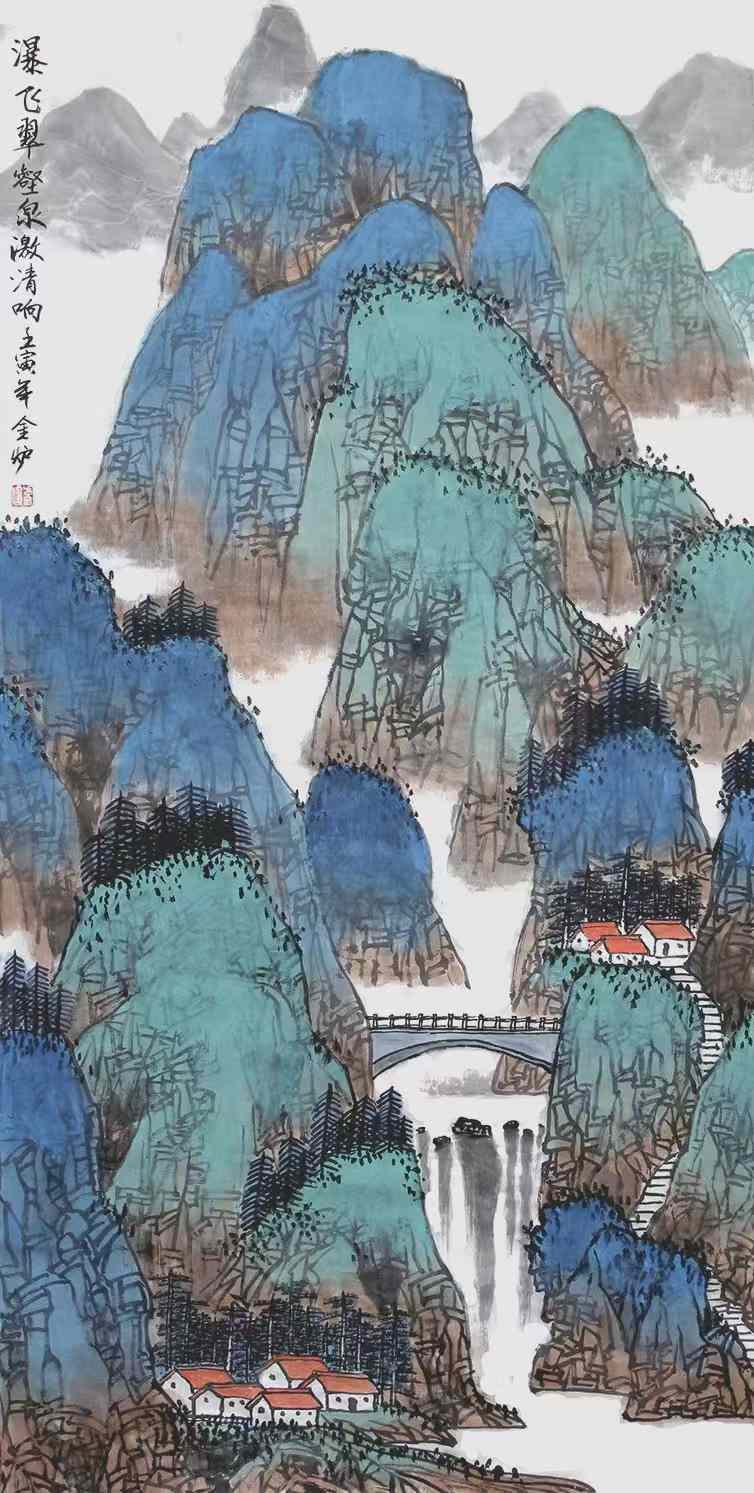 尤为值得一提的是,方金炉先生在色彩运用上突破了传统水墨淡彩的局限,大胆运用具有鲜活时代感的各种颜色,创造出传统与现代互相融合相互生发的色彩语言。他的画面往往清新明丽又不失厚重,他那不拘一格丰富多彩的色彩世界,产生了强烈的视觉冲击力,这种对色彩的大胆探索,使得他的作品在保留传统笔墨韵味的同时,更符合当代人的审美习惯,实现了“古法新诠”的艺术理想。