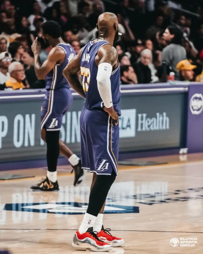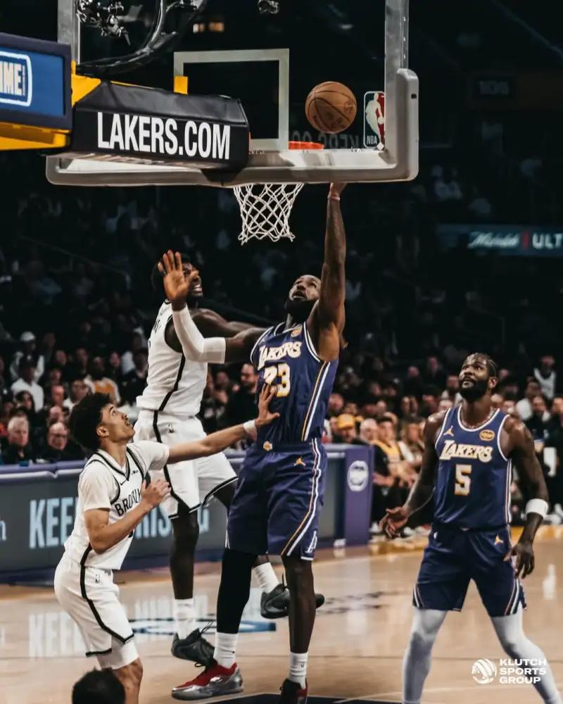 从照片中可以清晰地看到,勒布朗 - 詹姆斯在赛场上展现出了无与伦比的统治力。有的照片记录了他高高跃起,完成精彩暴扣的瞬间,那强大的滞空能力和爆发力,仿佛时间都为之凝固;有的照片则捕捉到他在三分线外冷静出手,篮球划过一道优美的弧线精准入网的画面,尽显他全面的进攻技巧。还有他在防守端积极拼抢,用强壮的身体对抗对手的场景,充分体现了他对比赛的专注和投入。