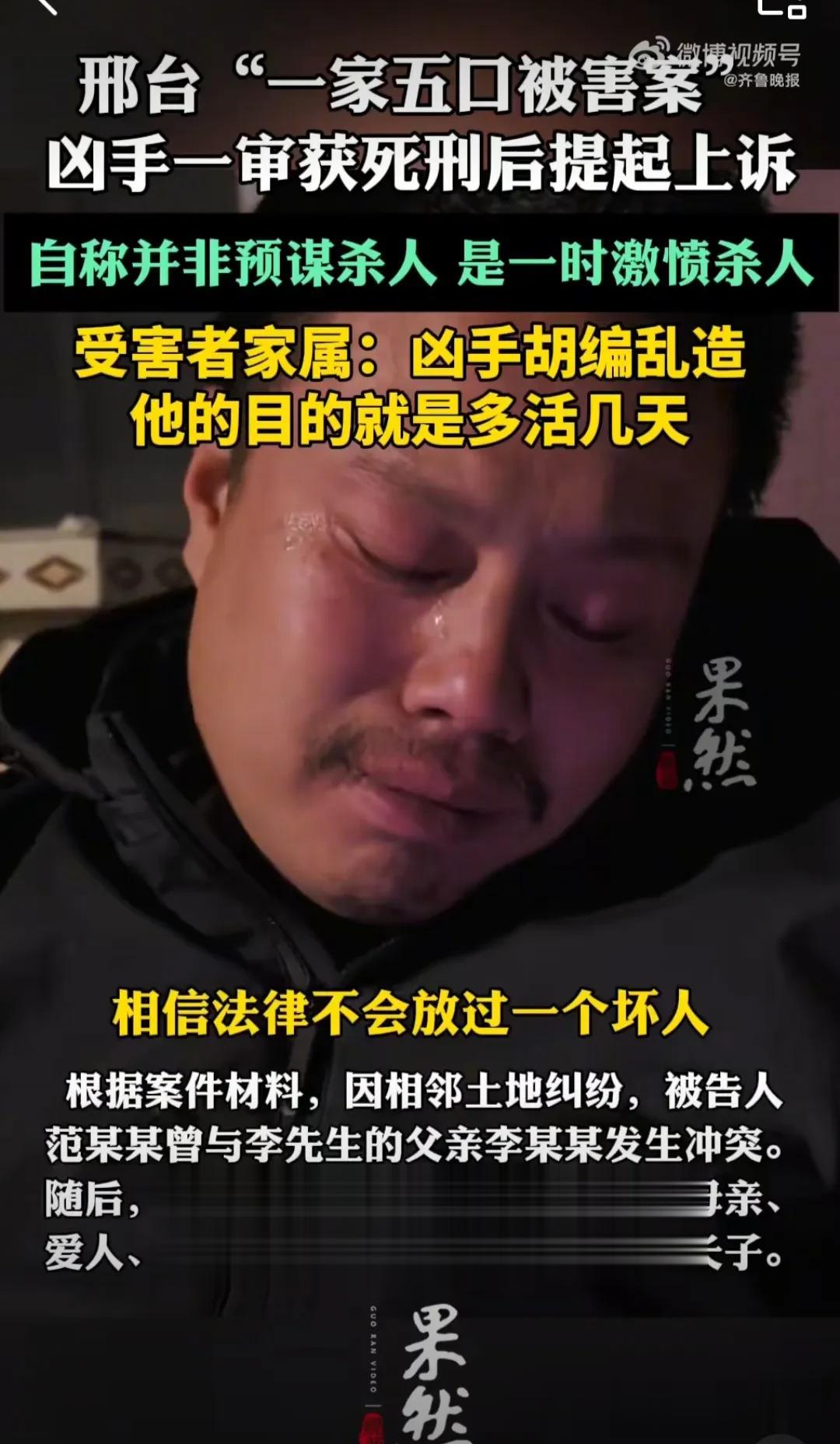 凶手范某某对判决不服,提起上诉11月28日,本案一审宣判,范某某因故意杀人罪,被判处死刑。