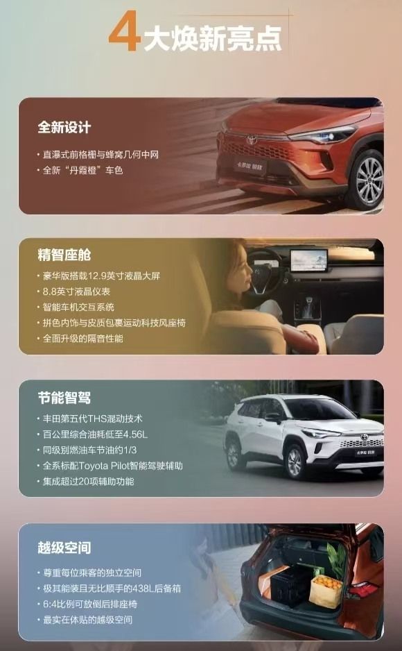 关键的是,新车依托丰田RCE体制,由更懂中国用户的中国本地研发团队主导开发,实现乐从外观内饰到智能科技的全面进化。