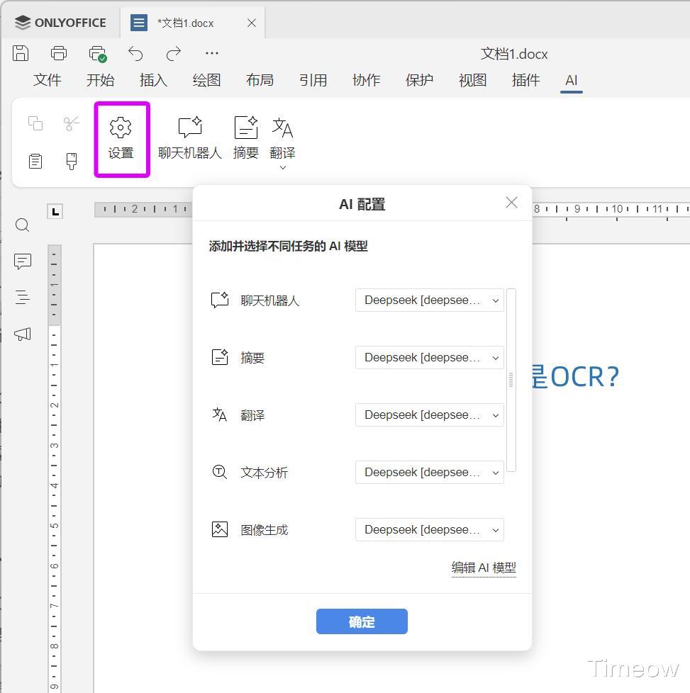 更新完成后,再去AI>设置>AI配置里设置一下每种任务的AI模型,尤其聊天机器人。其他的,比如文字类处理任务可以依托deepseek,图像类任务需要用gemini、chatgpt等进阶的工具。