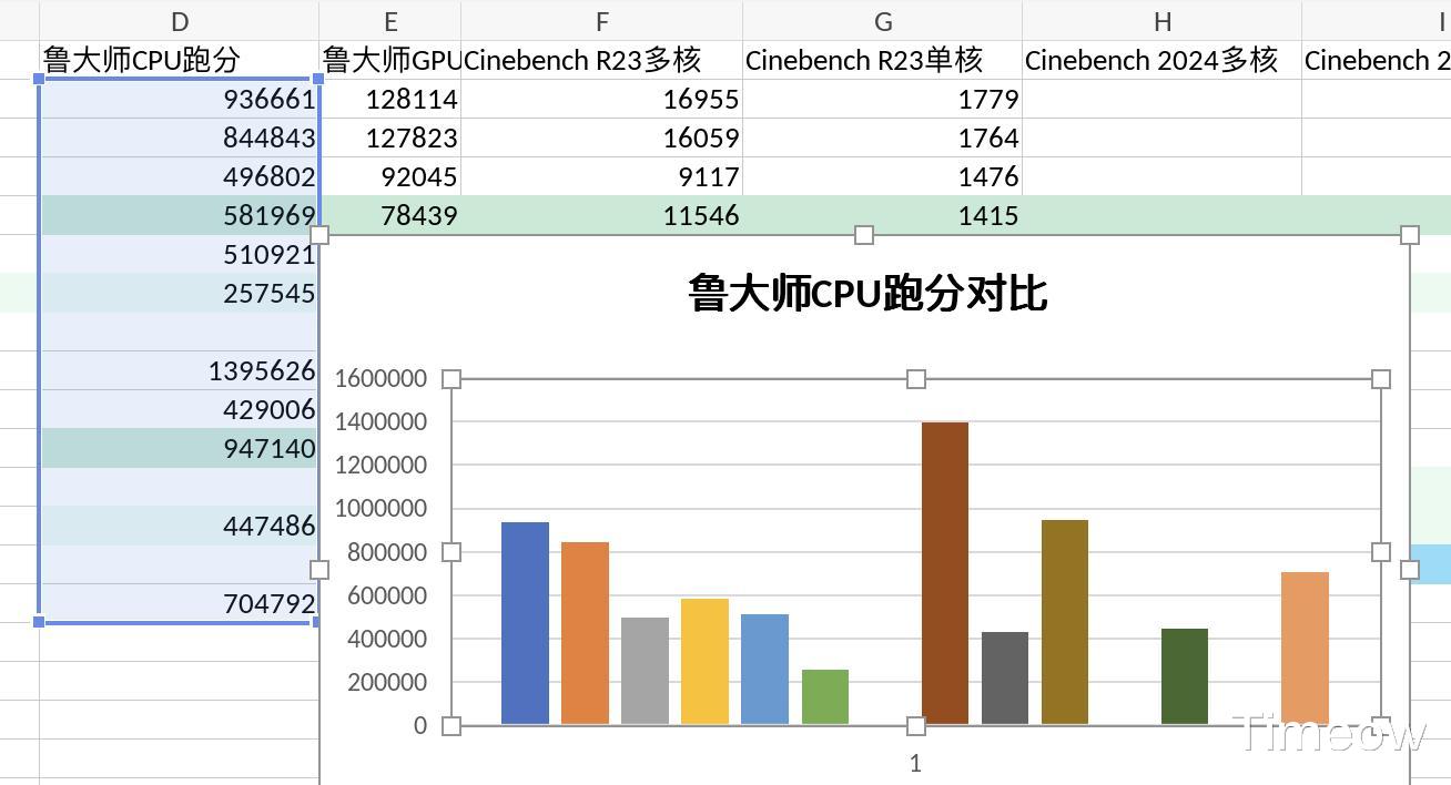 在电子表格里,还可以通过输入“帮我生成CPU跑分对比图表”,让AI智能体直接生成一个柱状图。