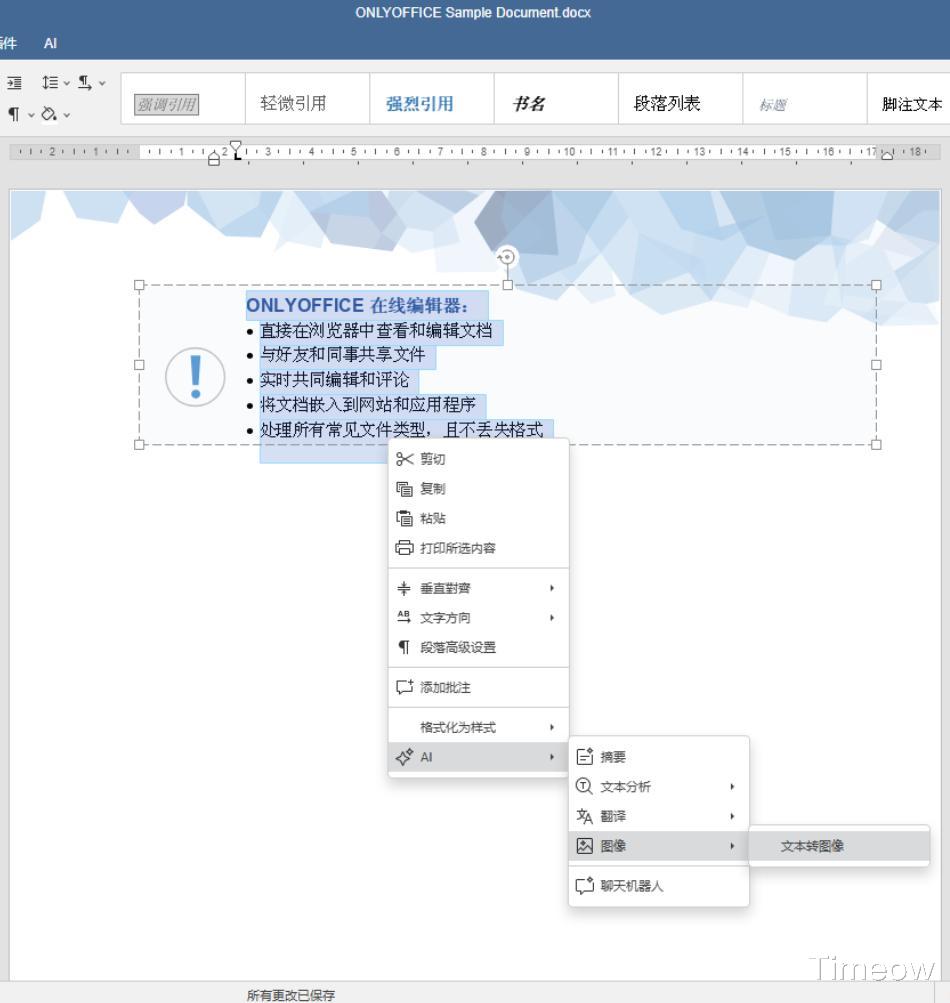 写作的时候,想要图文并茂也并不难,直接利用ONLYOFFICE的文生图功能就能实现。