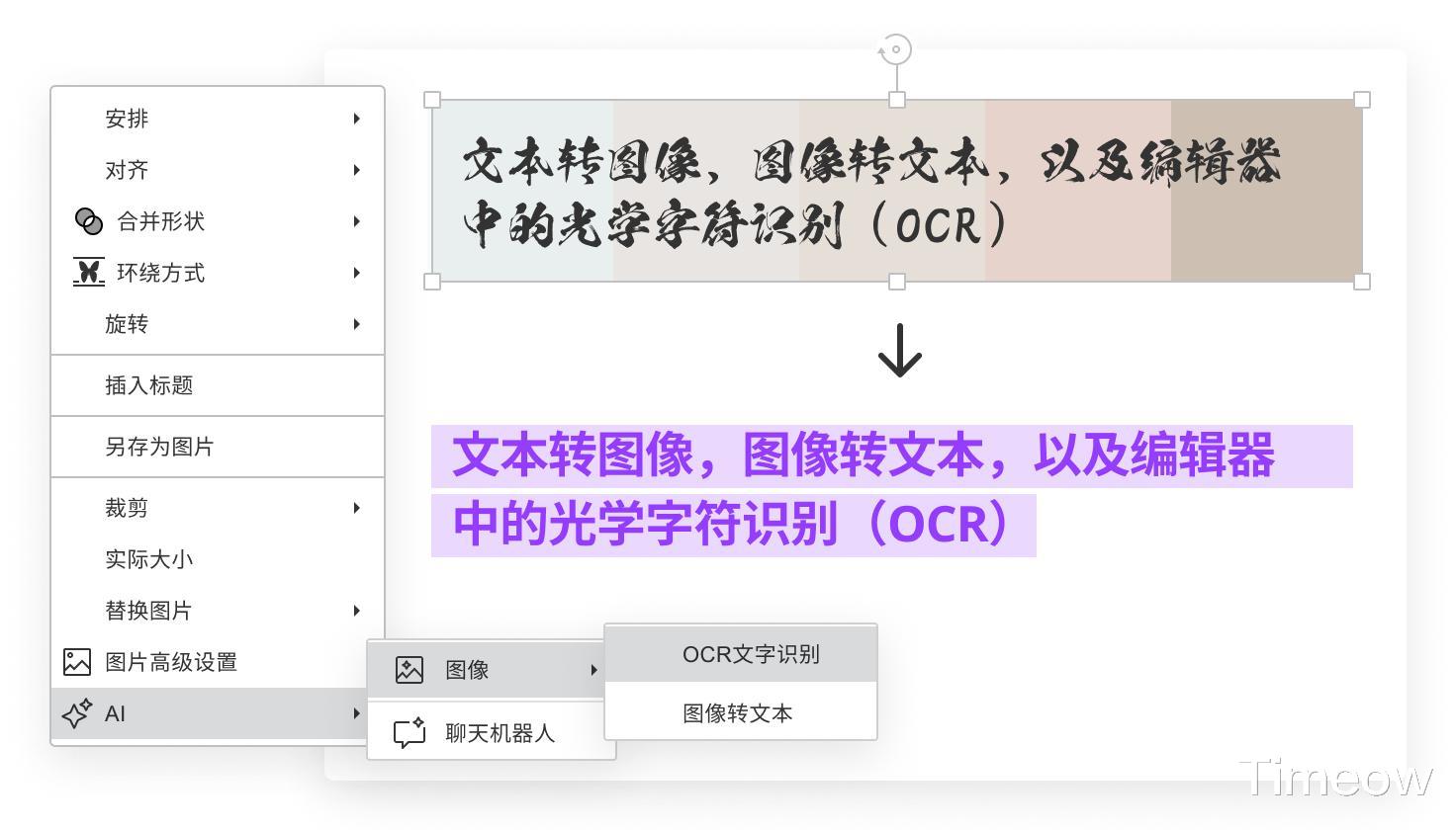 直接输入想要生成的图片描述文字、选中后右键>AI>文本转图像,等一小会儿,图片就出来啦: