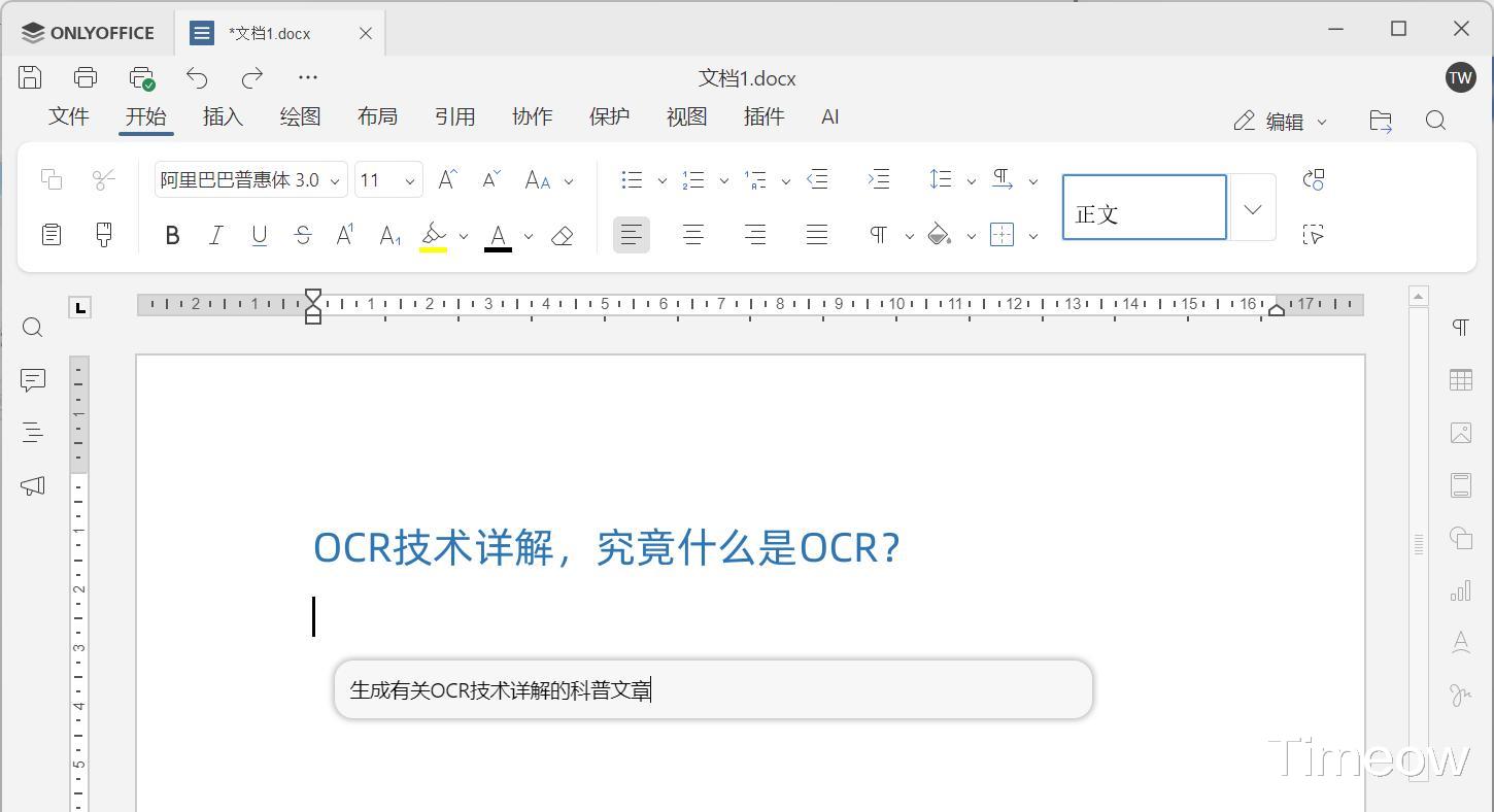 比如,我可以写个标题,然后让ONLYOFFICE帮我根据标题生成文本: