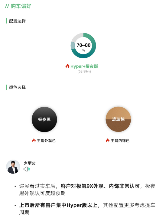 其实这种现象的出现更加说明了其产品定位的成功。极氪9X没有采用常规的“低配引流”,而是通过实车巡展让消费者直观感受顶配车型的价值。客户愿意为高配买单,证明极氪已经建立了足够强的品牌溢价能力。当消费者不再纠结于“要不要上高配”,而是讨论“哪个高配更合适”,这本身就是品牌向上的重要标志。