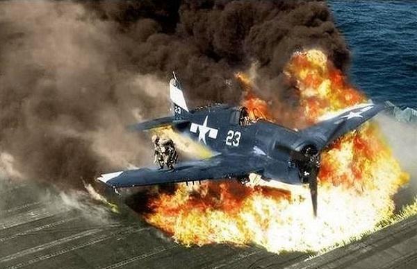 不过在战争快要结束的时候,1945 年 5 月 14 号那天,企业号让日军神风特攻队的飞机给撞了,前升降机一下被炸到百米高的空中,过了两天,企业号只得停止战斗,回美国本土进行大修。