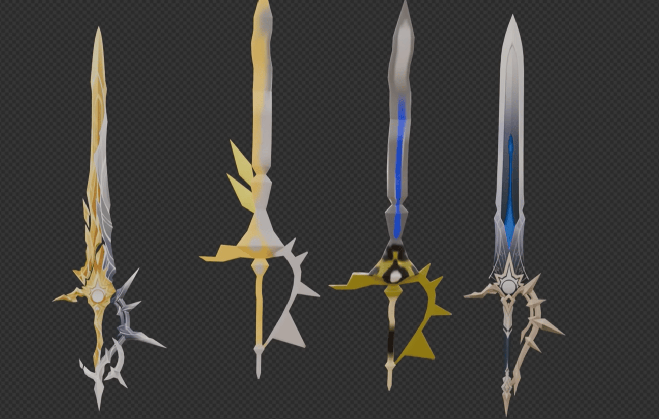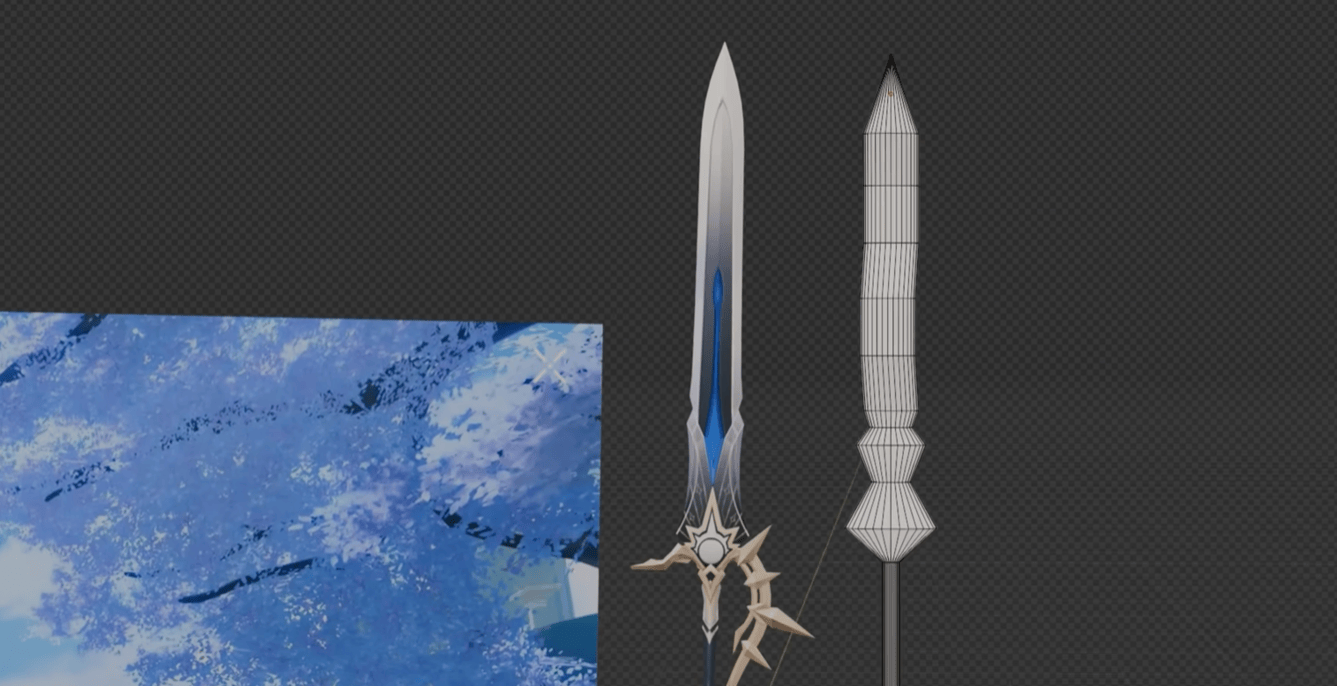 是的,这位UP主确实无法做出精良的模型,但为了还原度,他绞尽脑汁。不会做武器的他,用圆锥一节一节的延伸成了一把剑。
