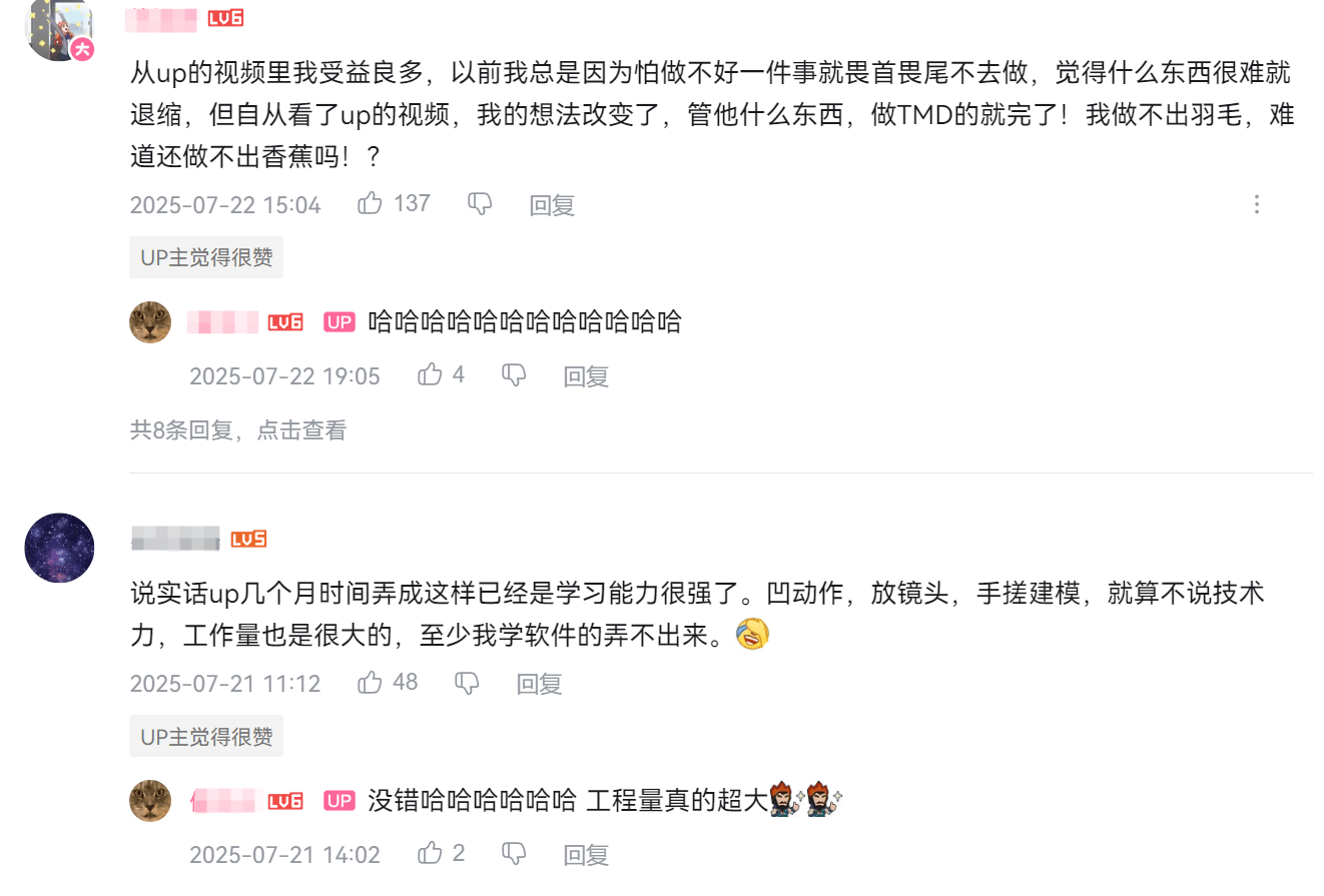 大家不仅看的津津有味,甚至有网友从这位UP主身上获得了勇气,决定也要去尝试着自己做做看,这何尝不是一种开拓呢?