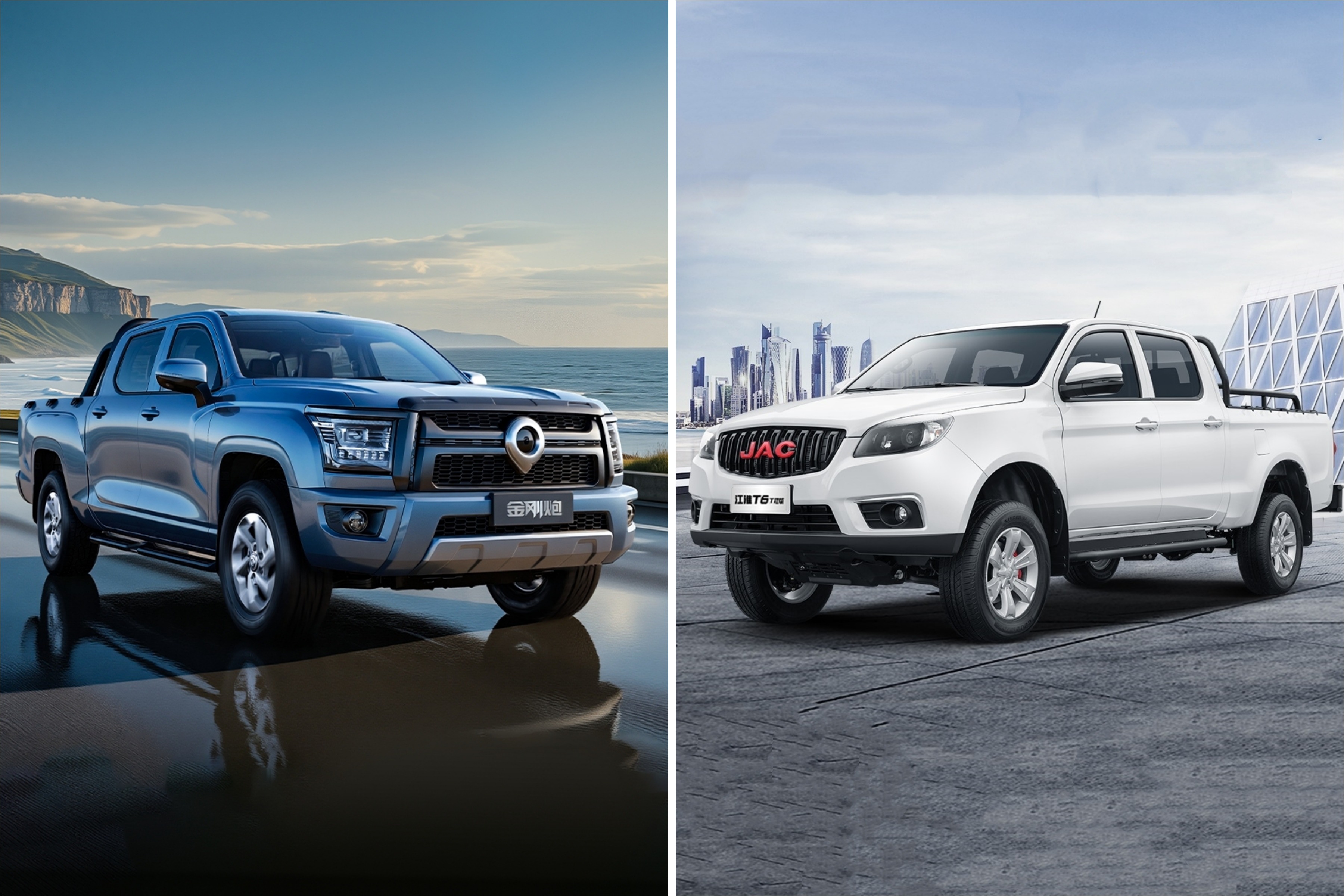 打开车门,踩下油门,两款车的动力性能也大不相同。金刚炮提供2.0T柴油和汽油动力,动力性能处于同级领先水平。江淮T6则有2.4L汽油、2.0T柴油、2.8T柴油,丰富的动力选择满足不同场景需求。