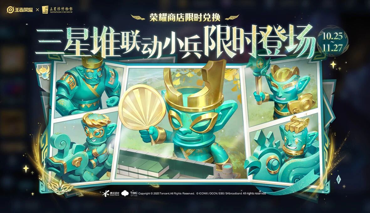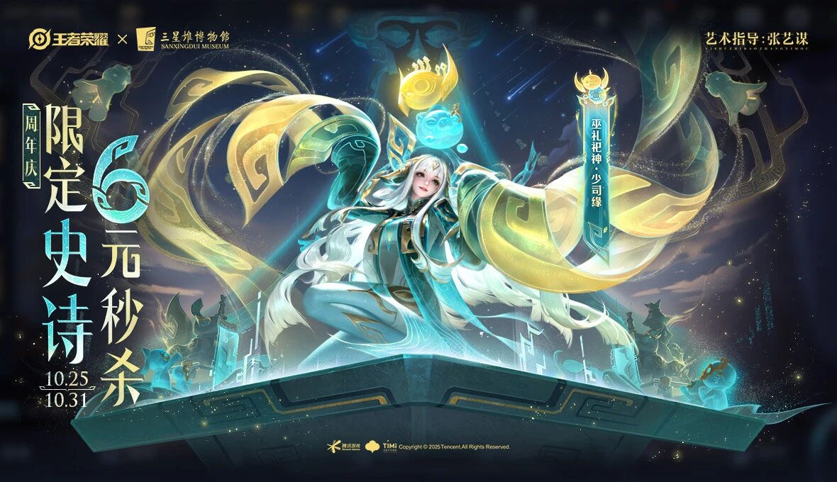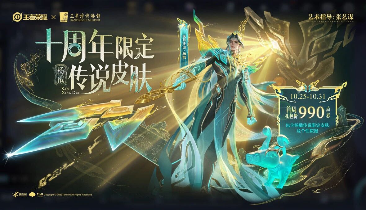 当然,10月25日还有后羿十周年三星堆皮肤【神树通天】的开放兑换。不仅可以用990限时点券,也可以选择用178个皮肤碎片,同时会配有按键。热门英雄给传说皮肤,这算是首例了。而且,这也是首款加入到碎片商店中去的传说皮肤吧。