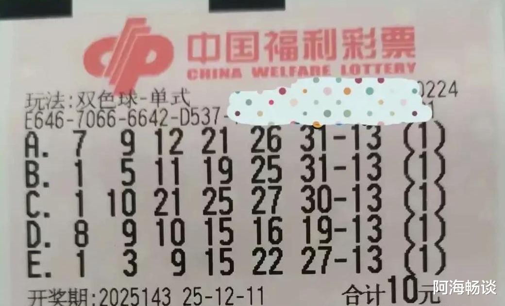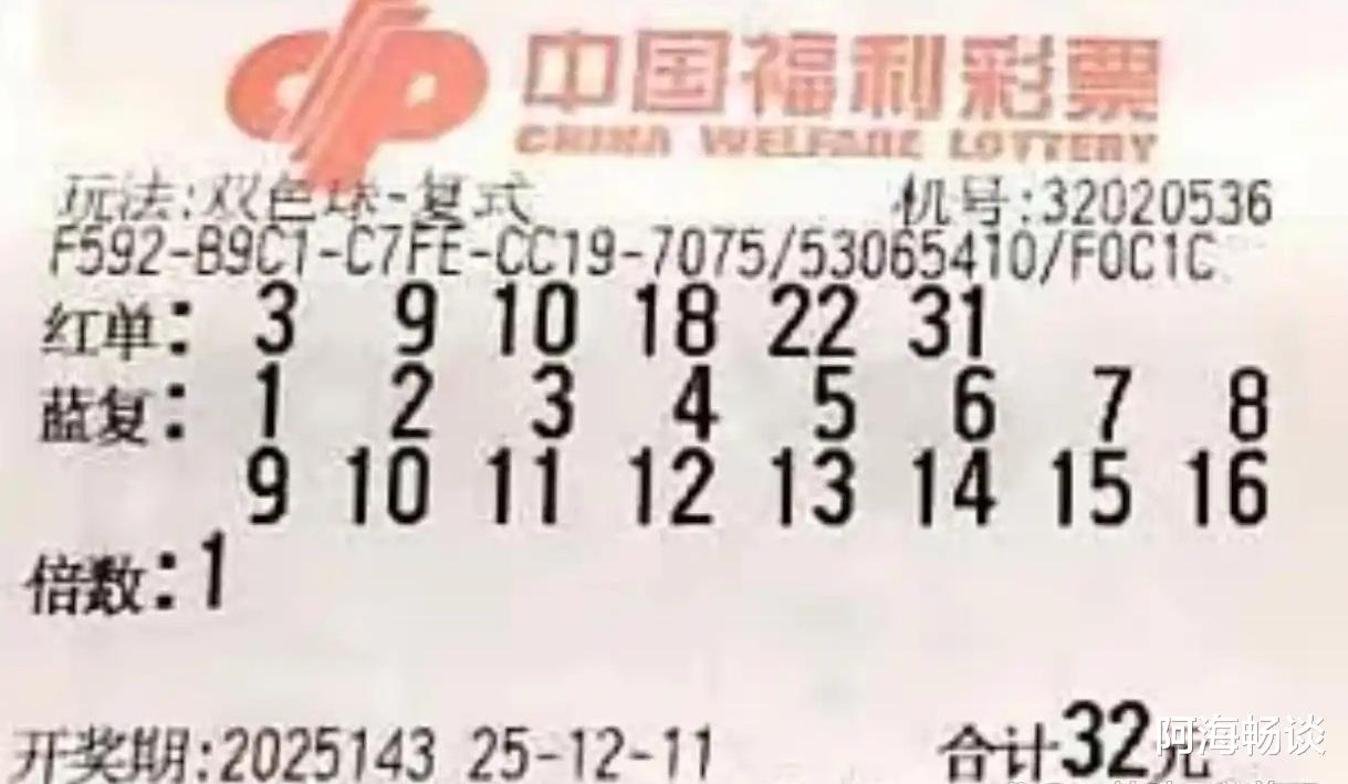 大家好!今天是12月11日,农历十月廿二,星期四。今晚双色球第25143期即将开奖,许多朋友已陆续晒出票面。首先回顾上期(25142期)开奖结果:红球02、13、15、23、27、31,蓝球16。当期共开出3注一等奖、79注二等奖、888注三等奖、49625注四等奖、1006681注五等奖及10029805注六等奖。分享票面之余,也提醒大家,保持理性,重在参与,愿大家以轻松心态乐享过程。接下来,让我们一同欣赏本期大家分享的票面吧。