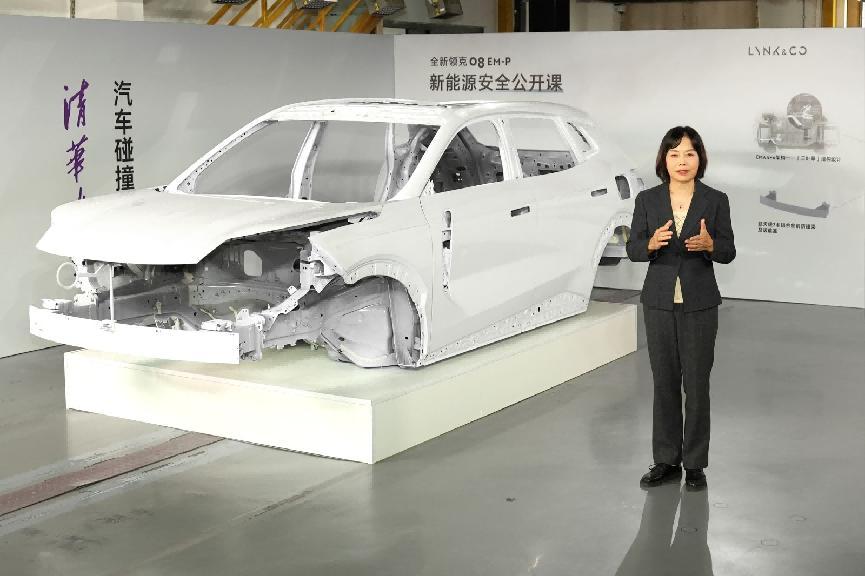全新领克08 EM-P白车身被清华大学汽车碰撞实验室收录,成为张金换教授团队的核心研究载体。要知道,该实验室深度参与国家汽车安全法规制定,能被认可,说明其安全技术已从“企业自夸好”,变成“学界公认范本”。然而能获青睐,靠的是硬核实力。它基于CMA Evo原生新能源架构打造,自带沃尔沃安全基因。白车身75%是高强度钢与铝合金,还配2000MPa热成型钢——强度相当于指甲盖大的面积能扛20头大象重量。再加上一体式硼钢门环、三叶草传力结构和专利底盘框架,像给车穿了“刚柔并济”的铠甲:碰撞时既能柔性吸能,又能刚性抗冲击,最大程度保住乘员舱空间,保护车内人。