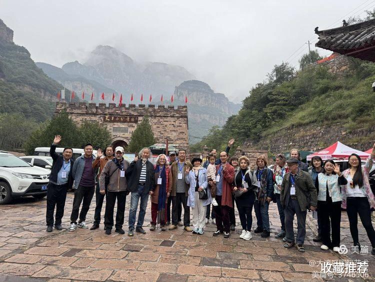 《中德艺术家国际交流展》特邀中国艺术家广西书画院副院长林峰,清华大学教授程里,河北邯郸学院美术系主任张尚公,延日法师,山西美协副主席任晓军在林州市《王母祠》门前合影留念