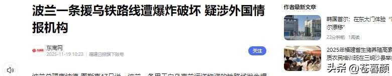 东南网:波兰一条援乌铁路线遭爆炸破坏 疑涉外国情报机构