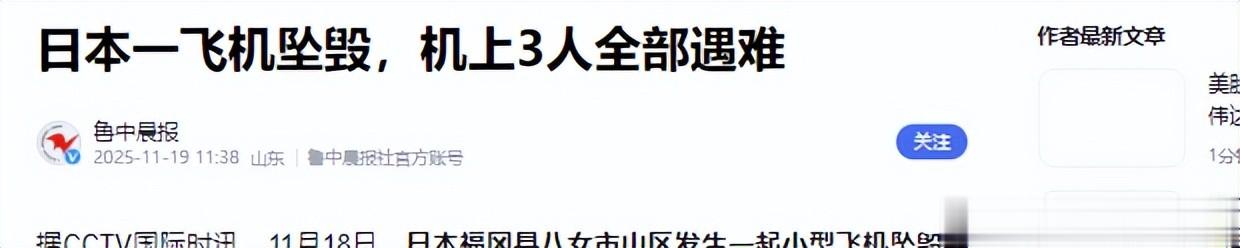 鲁中晨报:日本一飞机坠毁,机上3人全部遇难