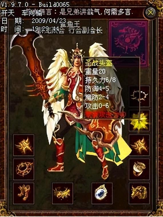 攻 0-6 圣战头盔:无蟠桃套时代的神仙装备!早年传世中,圣战头盔不算稀有,但能加到攻 0-6 的极品,绝对是凤毛麟角!要知道,在连蟠桃套都没有的年代,头盔能有这样的攻击加成,简直堪比 “神仙打架”!普通圣战头盔的攻击属性大多平平,这顶攻 0-6 的神盔,让战士在攻防两端都实现飞跃,当年谁要是能拥有它,在区服里绝对是众人羡慕的焦点,回头率堪比戴屠龙!