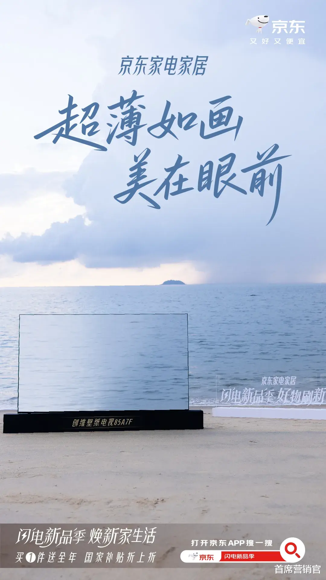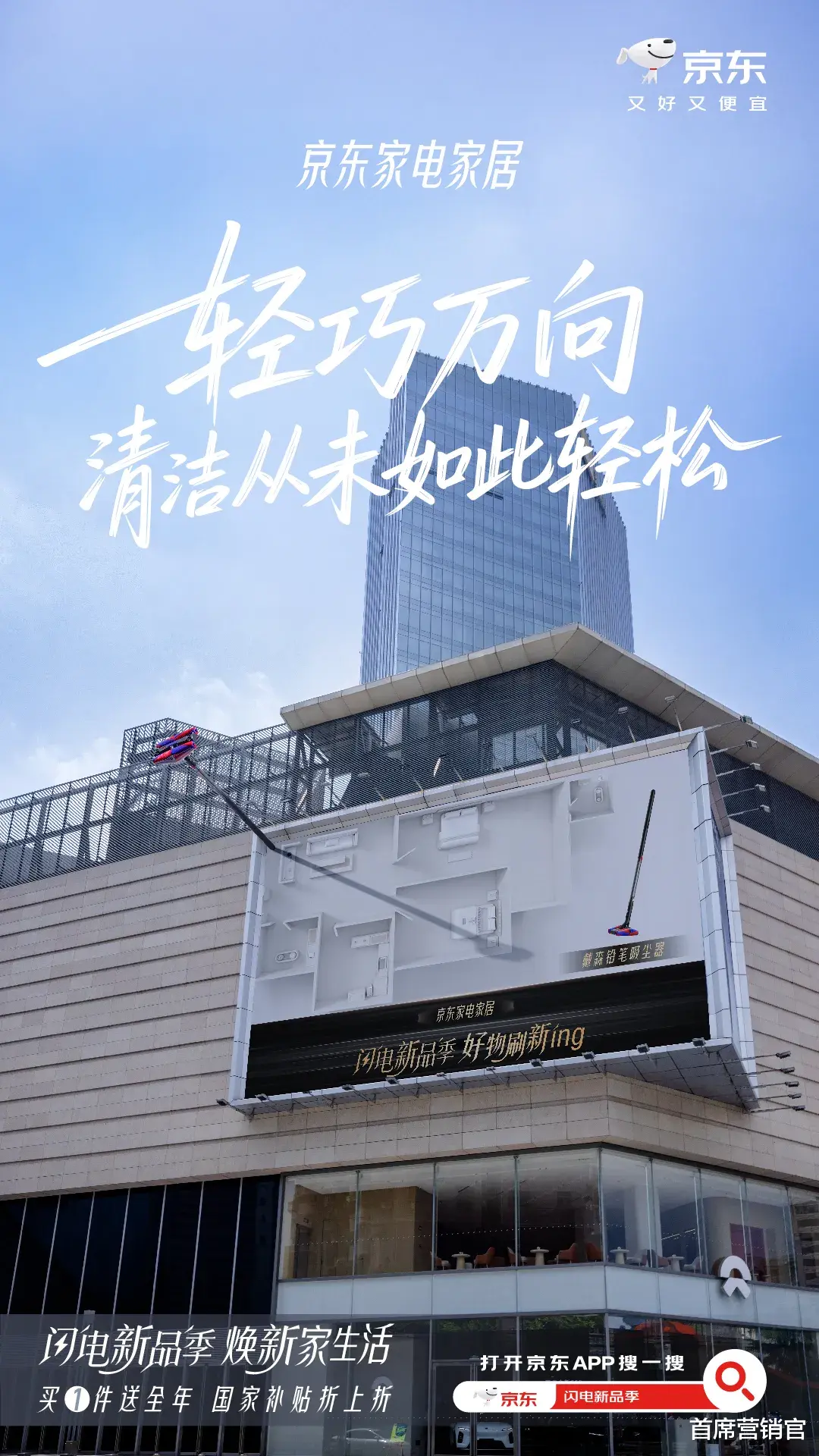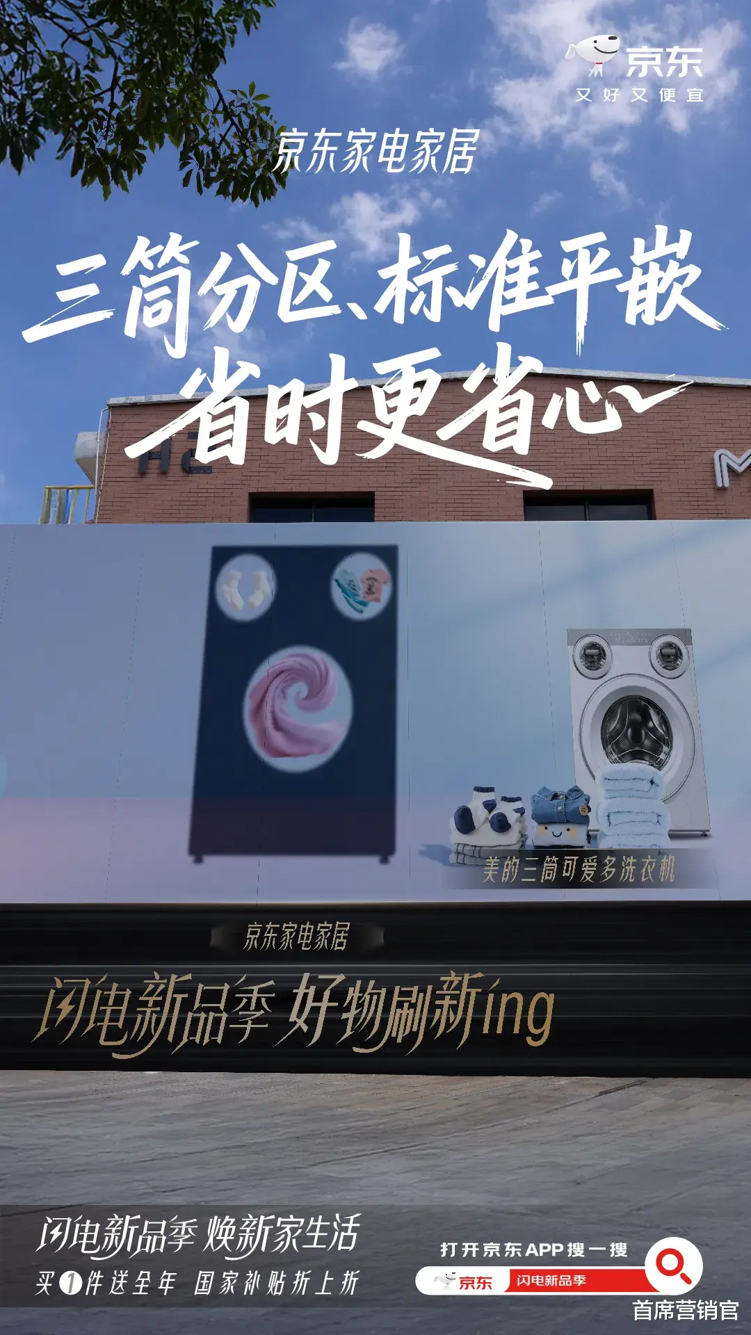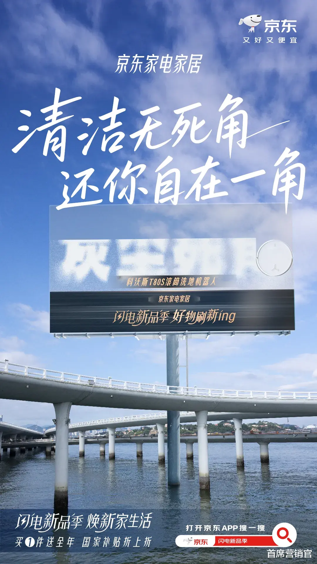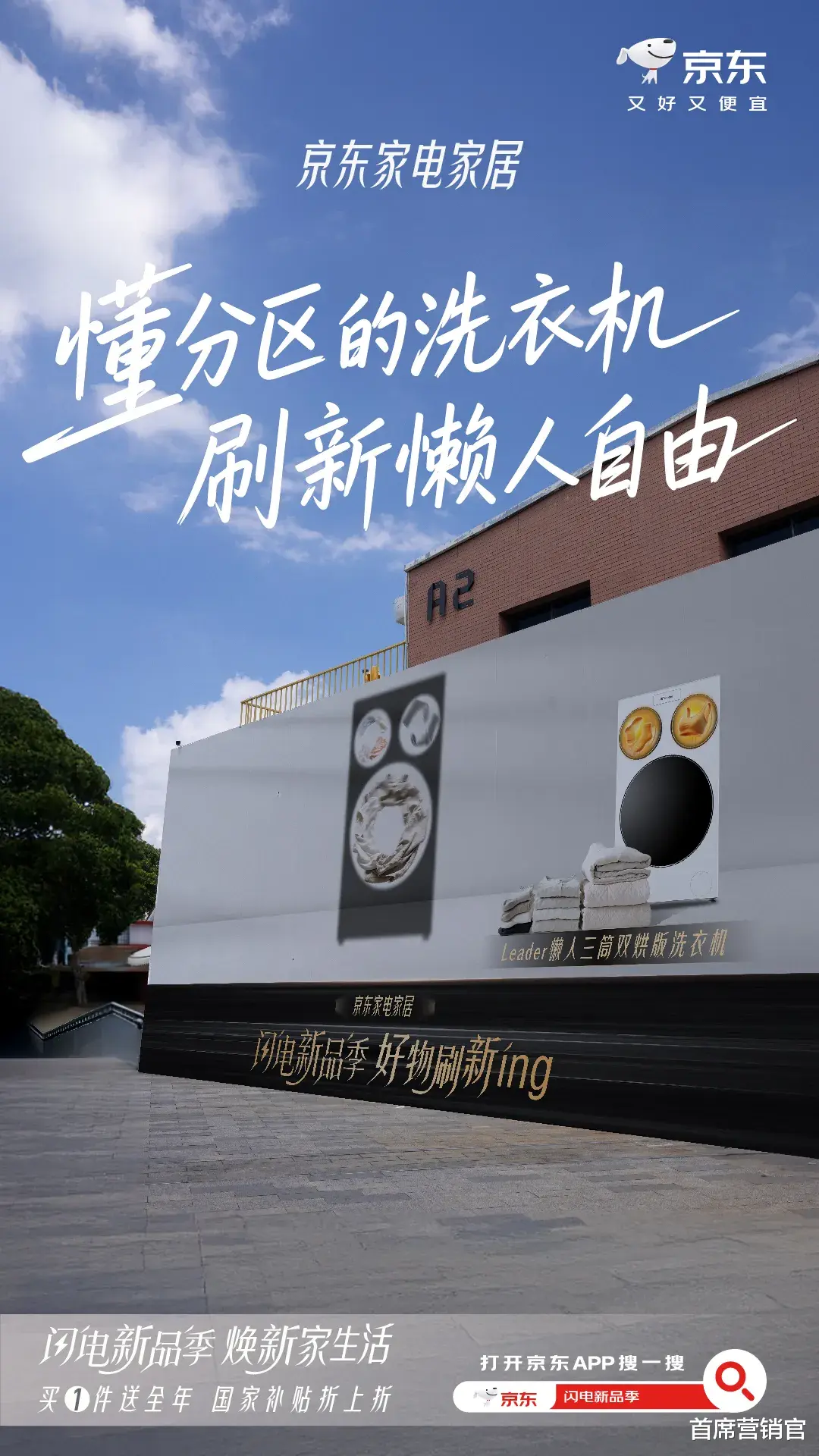 这不,京东最近也加入到了整活大军中,在户外宣传起了“闪电新品季,焕新家生活”主题活动,和其他品牌不同,京东的亮点在于更加放飞自我,完全不局限于户外的空间限制,把广告打到了大街上、公园、海边等城市各个角度,用不断被偶遇的“野生广告牌”,刷新了大众对户外广告的认知,也用一个个家电家居新品刷新着广大用户的生活。