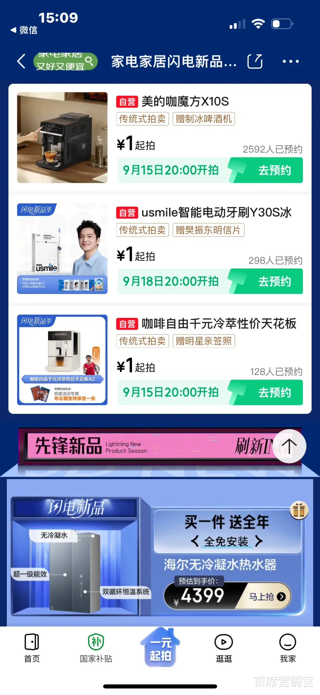 同时,作为一场新品促销活动,京东不仅带领消费者“仰望星空”,也用丰富的优惠活动做到了“脚踏实地”。活动期间,京东站内上线的“1元起拍”就是非常诱人的宠粉活动,不仅大大丰富了电商让利营销的玩法,也让有焕新生活需求的用户少了负担,提升了消费者参与的积极性。