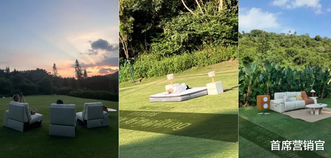 而当你躺在公园的喜临门床垫上,相信能体会到工学设计带来的舒适睡眠;坐在芝华士白月光沙发上露营,可以享受到温柔、治愈等白月光式的情绪价值;抬头望见和云朵融为一体的无印良品棉被,谁不想拥有被云朵拥抱的柔软感呢?