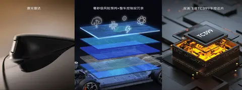 辅助驾驶方面,提供激光版和视觉版两种配置。激光版搭载1颗激光雷达+11个摄像头+3颗毫米波雷达+12颗超声波雷达,支持高速NCA、记忆泊车、遥控挪车等功能。从硬件上看,算是目前的主流高端配置。