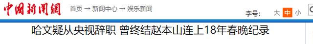 中国新闻网于2015年08月08日发布的 关于《哈文疑从央视辞职 曾终结赵本山连上18年春晚纪录》的报道