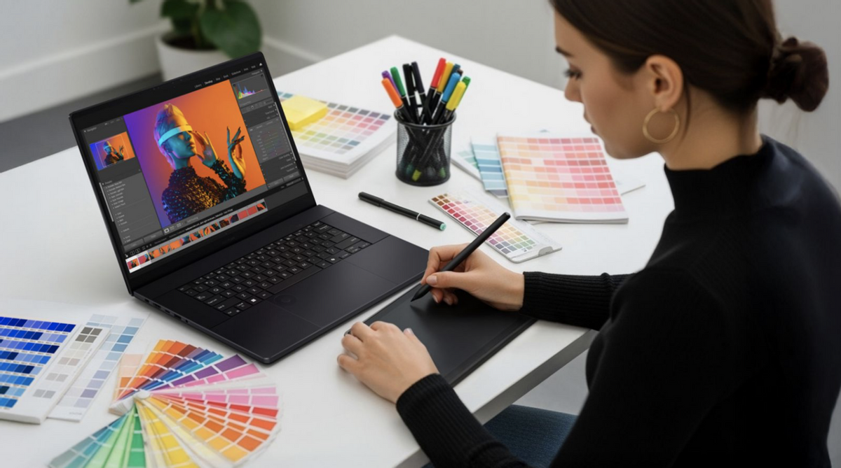 两侧接口配置同样专业,配备USB4、USB 3.2 Gen2 Type-C(支持100W PD + DP1.4)、HDMI 2.1(支持8K 60Hz / 4K 120Hz)、SD Express 7.0高速读卡器及双USB 3.2 Gen2 Type-A,可直接连接专业监视器、高速存储设备、手绘板等外设,无需转接器,适配多设备协同创作需求,同时保留3.5mm音频接口,满足专业音频监听需求。