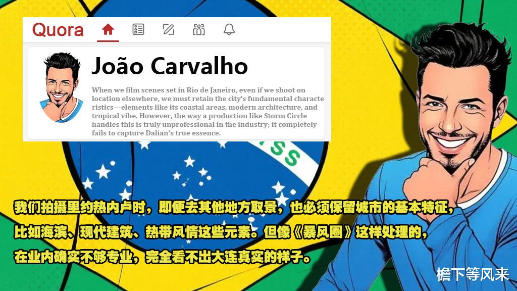 巴西导演卡拉提起专业标准:我们拍摄里约热内卢时,即便去其他地方取景,也必须保留城市的基本特征,比如海滨、现代建筑、热带风情这些元素。但像《暴风圈》这样处理的,在业内确实不够专业,完全看不出大连真实的样子。