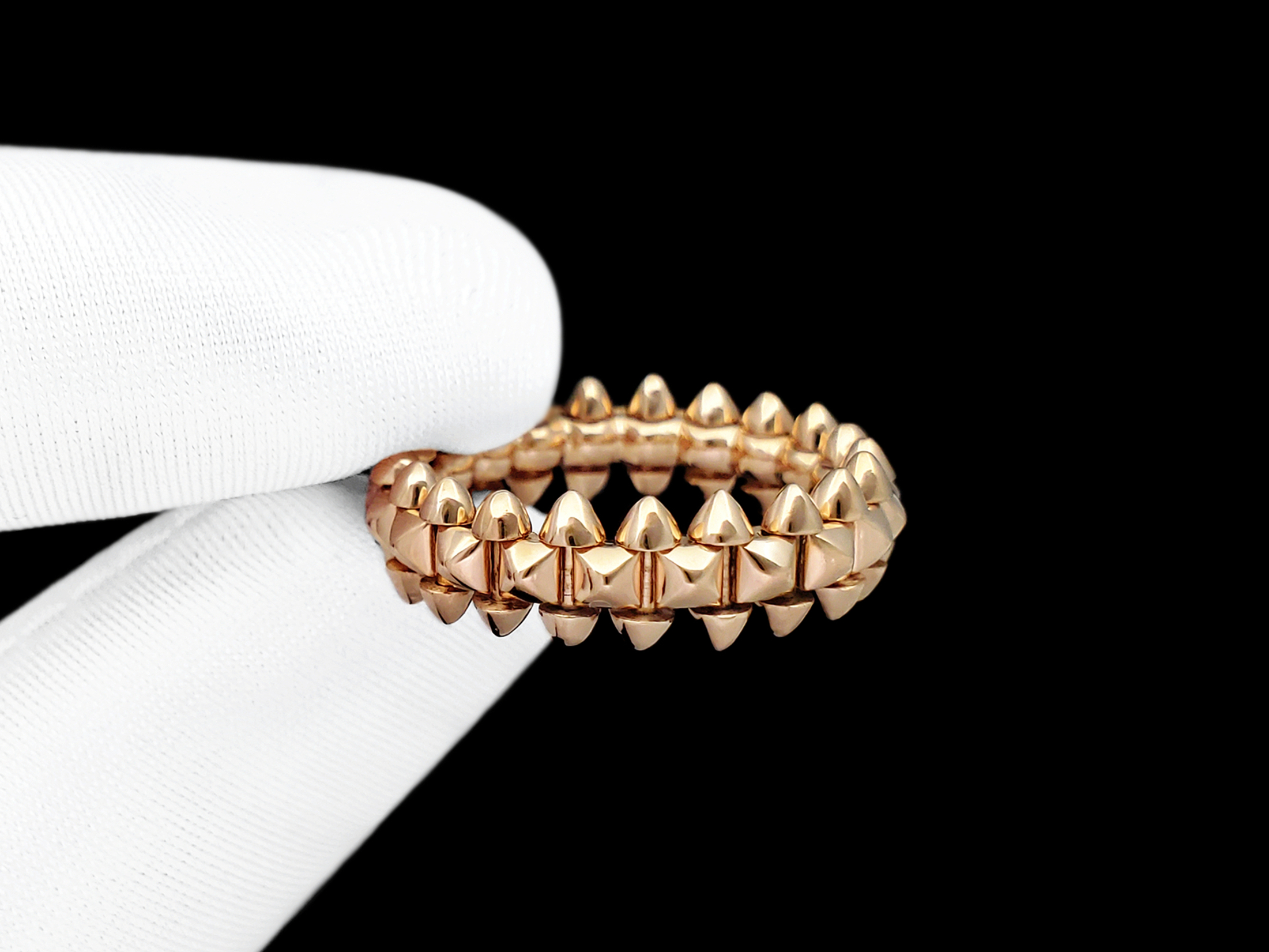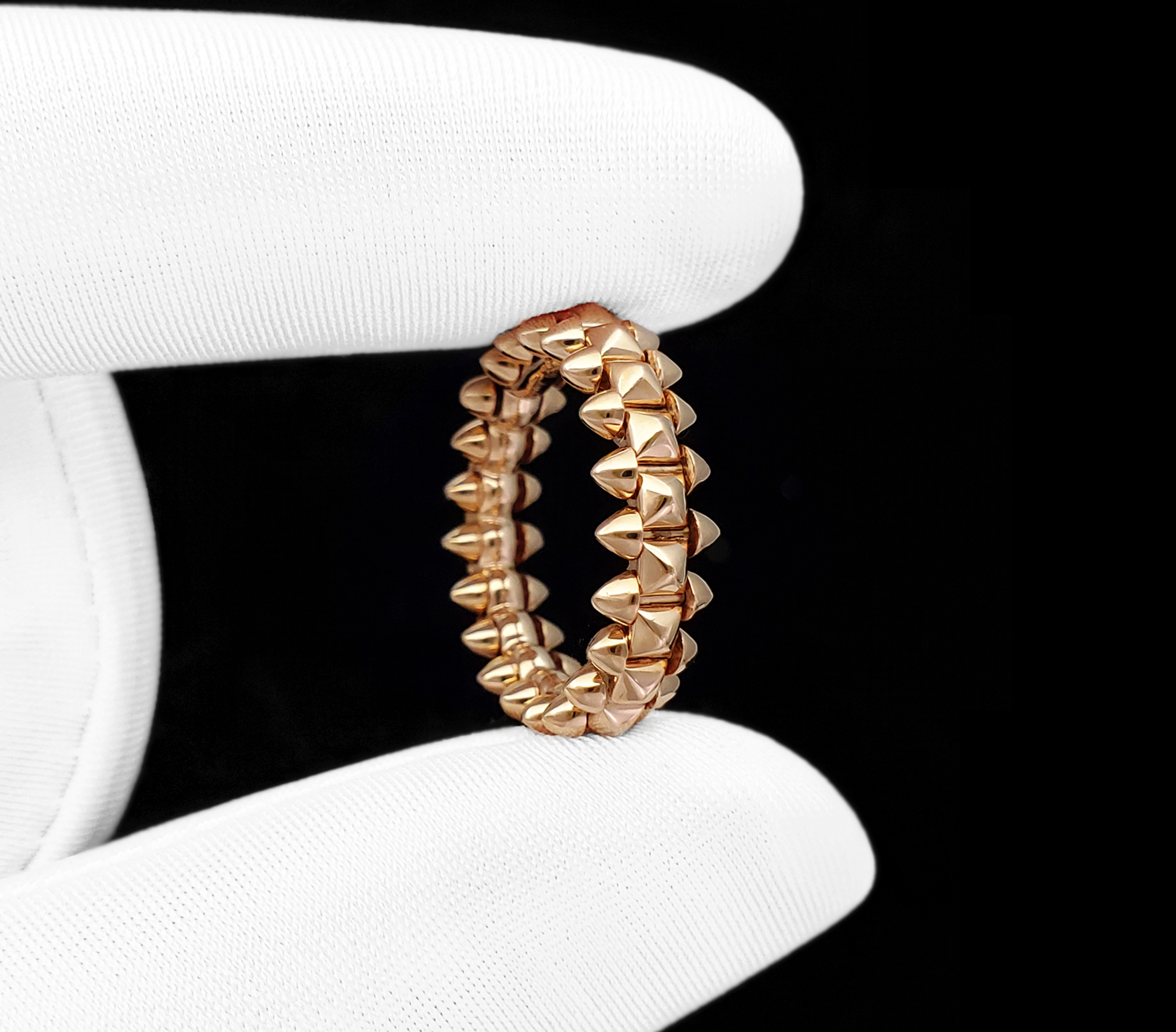 戒指的外观充满张力,尤其是铆钉元素的运用,既显露锋芒,又不失精致。如果您也被这独特的设计所吸引,在此之前,我们需首先了解下该系列戒指的分类。
