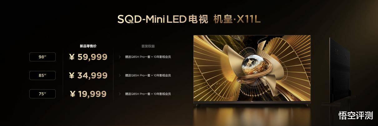 技术颠覆性升级,价格依然给力,TCL X11L 98/85/75吋零售价分别为59999元、34999元、19999元,TCL的顶尖科技,让所有用户都能触手可及。