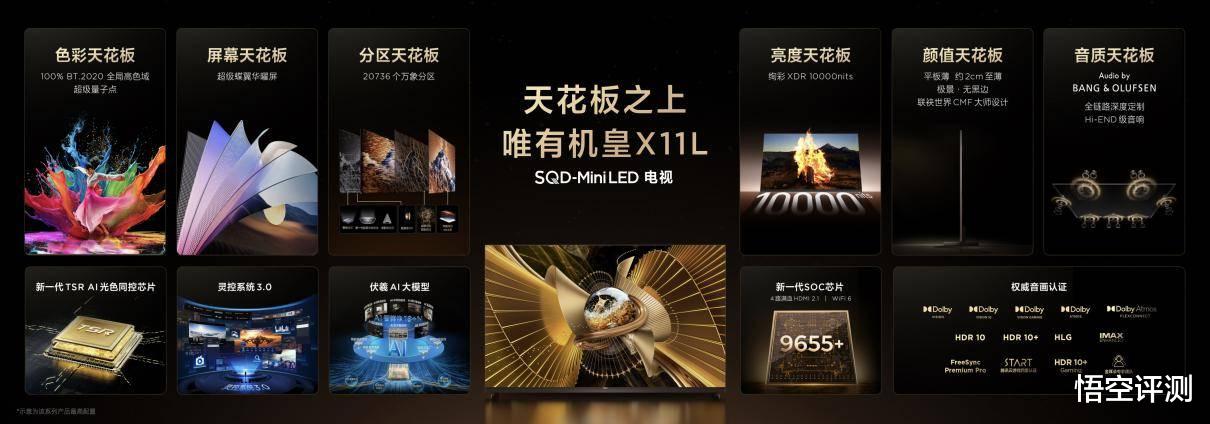 万象分区继续突破,一整套Mini LED控光系统中新增无影均光塔和动态光域重构技术,带来控光效果的数倍提升,实现数量与质量双重突破,直达Mini LED分区之巅。98吋X11L拥有20000+万象分区,是当前行业背光分区数最多的百吋级电视。