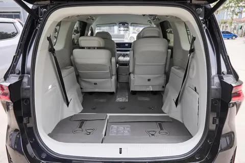 空间方面表现同样令人满意。星海V9越享系列车身长宽高分别为5230毫米、1920毫米和1820毫米,轴距达到3018毫米,车内空间利用率为85.2%,实际使用面积达5.54平方米。座椅布局灵活,支持7座、5座、4座乃至2座多种组合,极大满足不同的乘载需求。主驾驶座椅为尊享配置,6向电动调节轻松调整至舒适姿势;副驾驶为“尊享女王”级别,支持4向电动调节,且可通过语音指令一键切换到半躺状态,长途疲劳时可有效放松。第二排独立座椅不仅具有左右滑动功能,还配备8向电动调节和2向手动调节,且带加热、通风及按摩,保障长时间乘坐的舒适和放松感。尾箱空间表现同样亮眼,7座满员状态下后备箱容量为593升,轻松容纳7名乘客携带的多件行李。若仅两人出行,放倒第三排座椅后容量提升至2616升,空间等同于一张1.7米长的车内睡床,适合短暂休息或搬运大型物品。如周末户外露营,可装载帐篷、睡袋等装备,极大丰富了使用场景。
