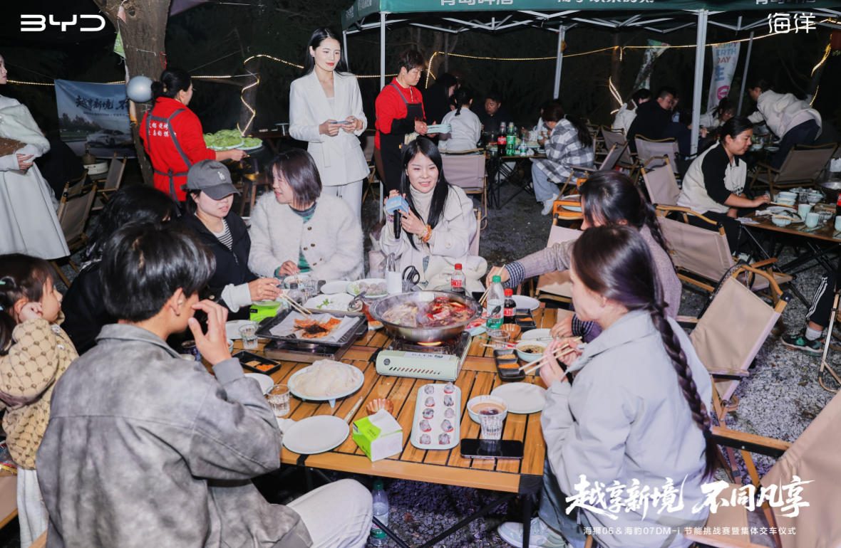 夜幕降临海洋网的家人们相聚一起,围炉煮茶,观影K歌,这久违的好天气火锅烧烤相谈甚欢,此次活动通过“挑战赛+交车仪式”的创新形式,不仅直观展示了产品的硬核实力,增强了用户对比亚迪技术品牌的认知与信赖,也通过富有仪式感的交付,提升了车主归属感与品牌忠诚度。这充分体现了比亚迪深耕区域市场、贴近用户、强化服务体验的营销理念。