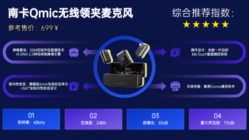 南卡QMic凭借专业录音棚级表现,已赢得99%以上明星主播及数码科技媒体好评,被誉为“无线领夹麦音质的巅峰标杆”。与同价位竞品相比,无论是收音纯净度、降噪能力还是信号稳定性,QMic都处于行业领先地位,可谓“盲选也不会出错”的旗舰之作。