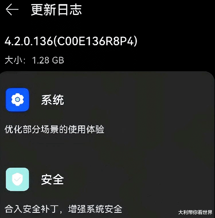 Mate80刚发布没几天,老用户群里马上就喧闹起来了,倒不是因为新手机,而是那台用了近5年的Mate30收到了推送鸿蒙4.2版本更新,安装包大小为1.28GB,这个数目让很多人发懵了,平常安全补丁也就几10兆,这次一下子涨到1个多G,显著感觉不太正常了。