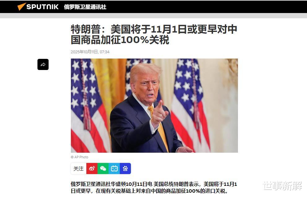 这样的是重大消息,他肯定要发作文小作文,以提高自己的影响力,果然他随后他在自己的社交媒体平台“真实社交”上发文称:“从2025年11月1日起,美国将对华进口的商品增加征100%关税。会不会发生变化,取决于中方会不会采取行动?