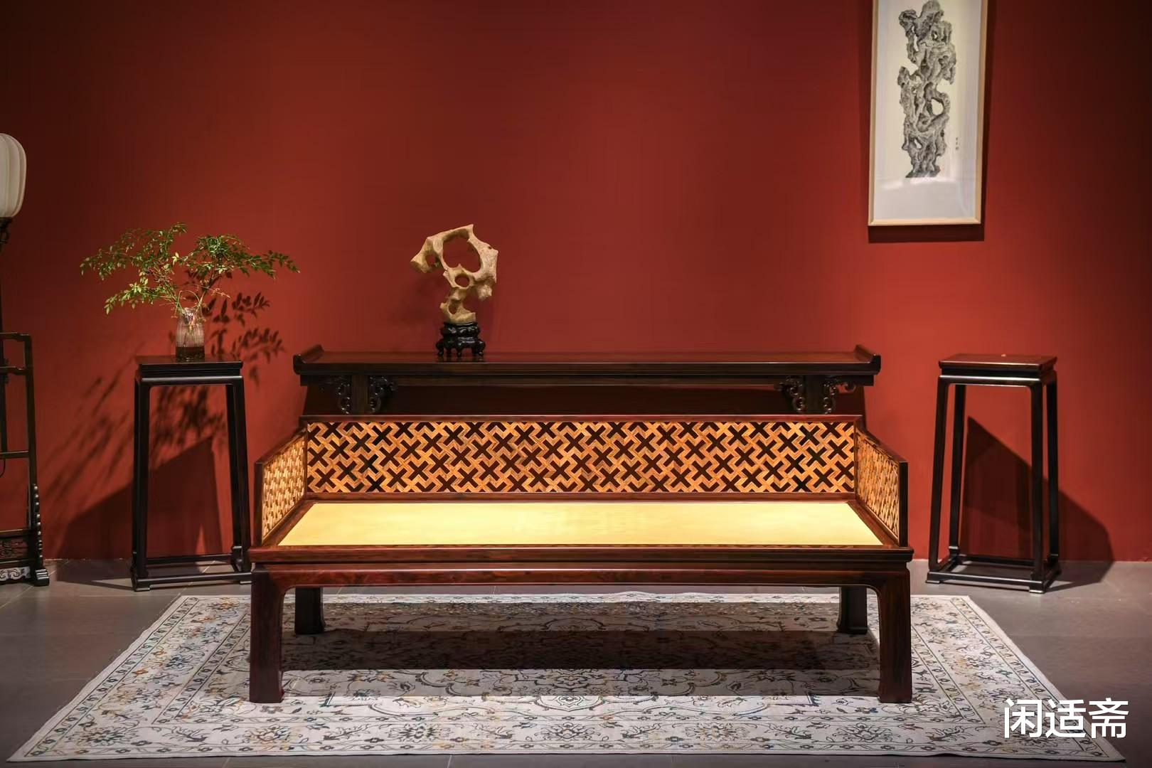 传世珍品 紫檀嵌黄花梨万字纹藤面罗汉床
