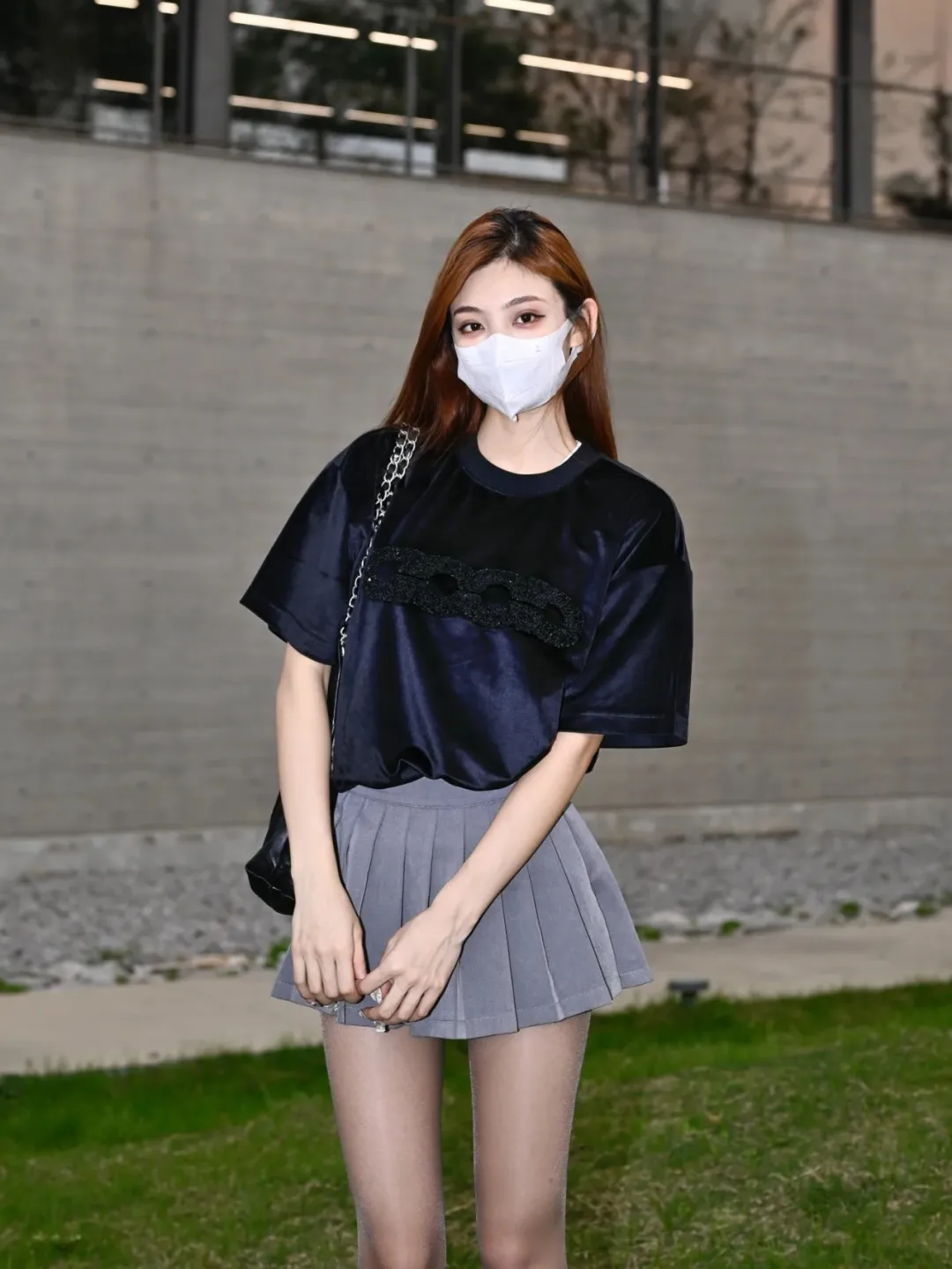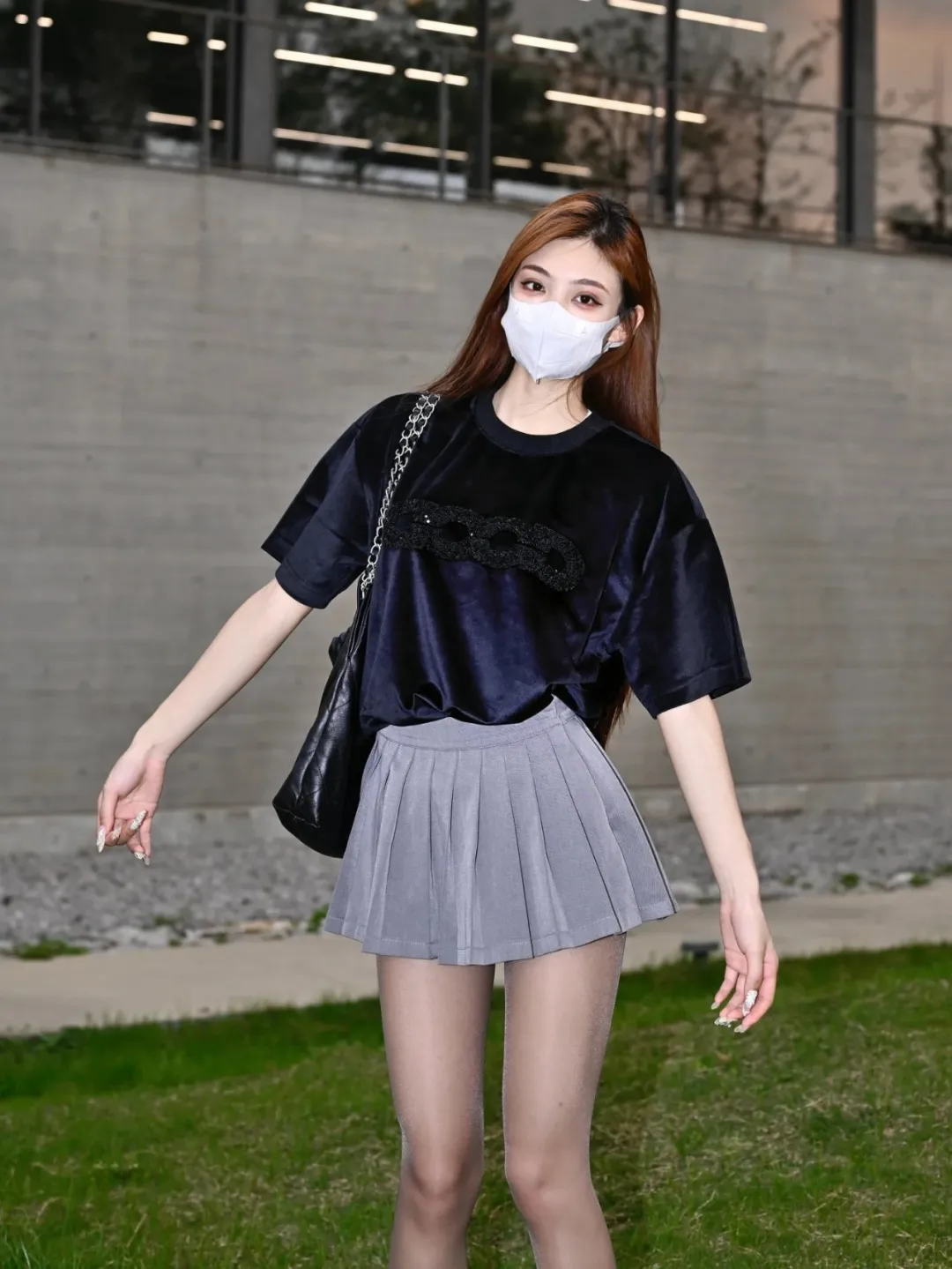 灰色百褶裙总带着一种矛盾的温柔。它的质感是实在的,指尖划过裙面时,能触到褶皱边缘细微的起伏,像触摸着一段被妥帖折叠的时光。走路时,裙摆随脚步轻轻晃动,那些褶皱便活了过来,不是杂乱的堆叠,是有节奏的开合,像蝴蝶振翅时的弧度,不疾不徐,带着几分青涩的灵动。可它的颜色又带着沉静的底色,灰是最懂得包容的色,不抢镜,却能稳稳接住所有光线 —— 晨光里是暖调的灰,像加了一勺蜂蜜的热牛奶;午后阳光下是透亮的灰,像浸在溪水里的鹅卵石;傍晚路灯下又成了柔润的灰,像裹了一层薄纱的月光。这种沉静里藏着的灵动,让它既不显得幼稚,也不太过老气,像二十岁出头的姑娘,眼里有清澈,心里有笃定。