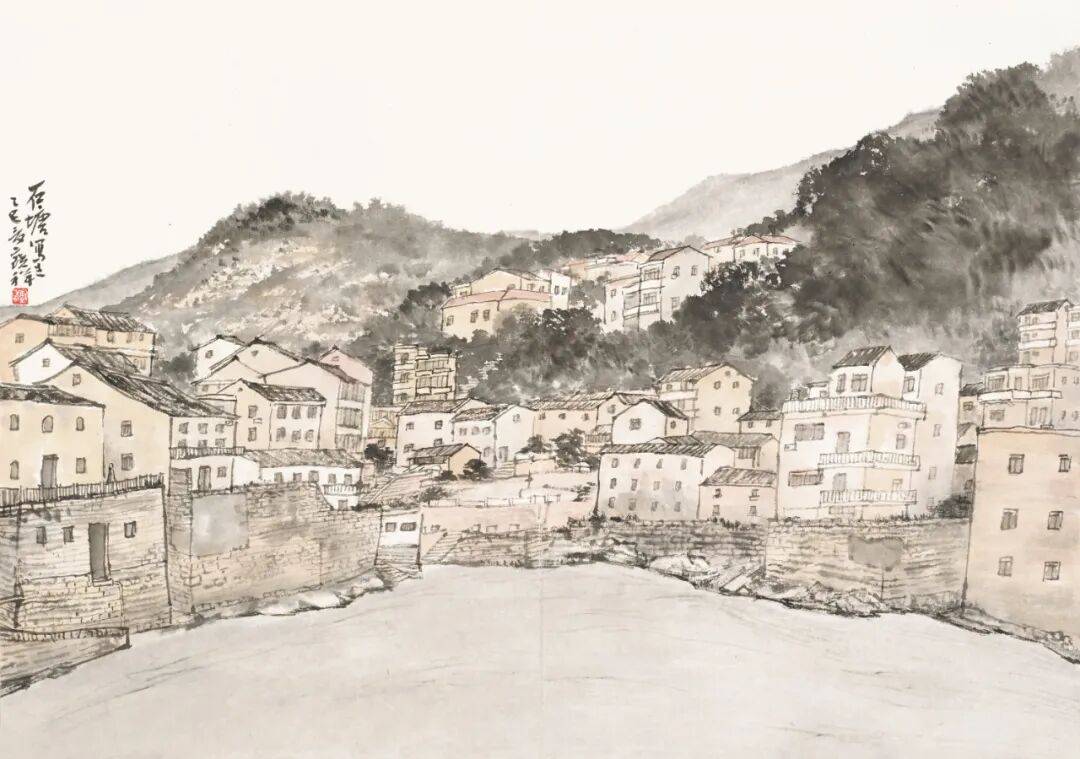 第三是重视用笔用墨。我喜欢用水墨写生,有时略施淡彩。这不是因为省事,而是水墨素雅朴素,并且水墨画最能展现画家的功力,而内行往往看功力。水墨画颜色相对颜色单一,所以用笔用墨要力求丰富,否则画面容易单调。用笔要有紧有松,有节奏感。画主景时严谨一点,其它就可以放开一点。放开的尺度越大,画面就越轻松。用笔还要有轻重缓急、提按顿挫、大小粗细。用墨要有层次和韵味。浓淡干湿焦结合,又有所偏重。比如有的以湿为主,有的以干为主……。笔墨要尽量洒脱,还要注意处理好点、线、面的关系。