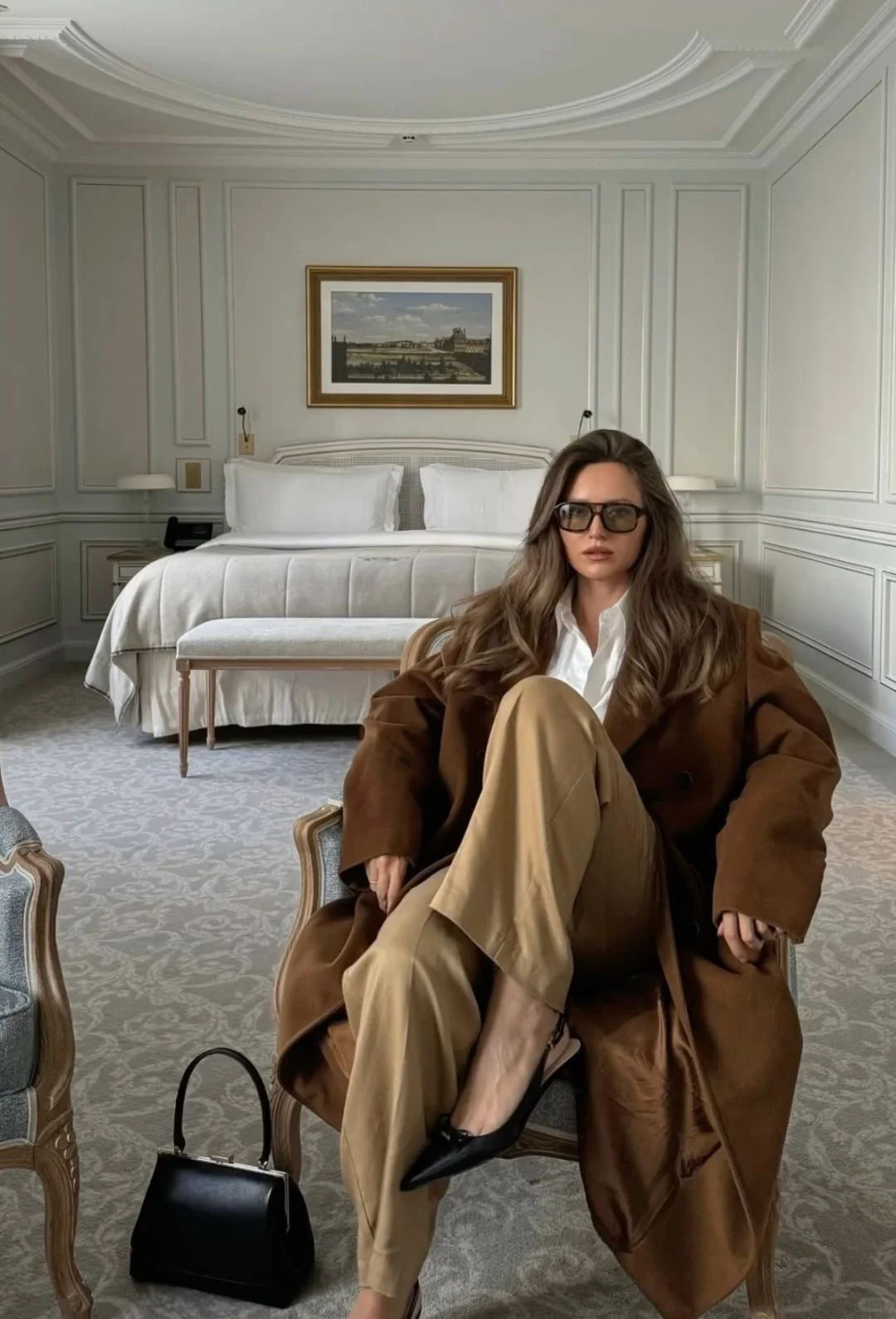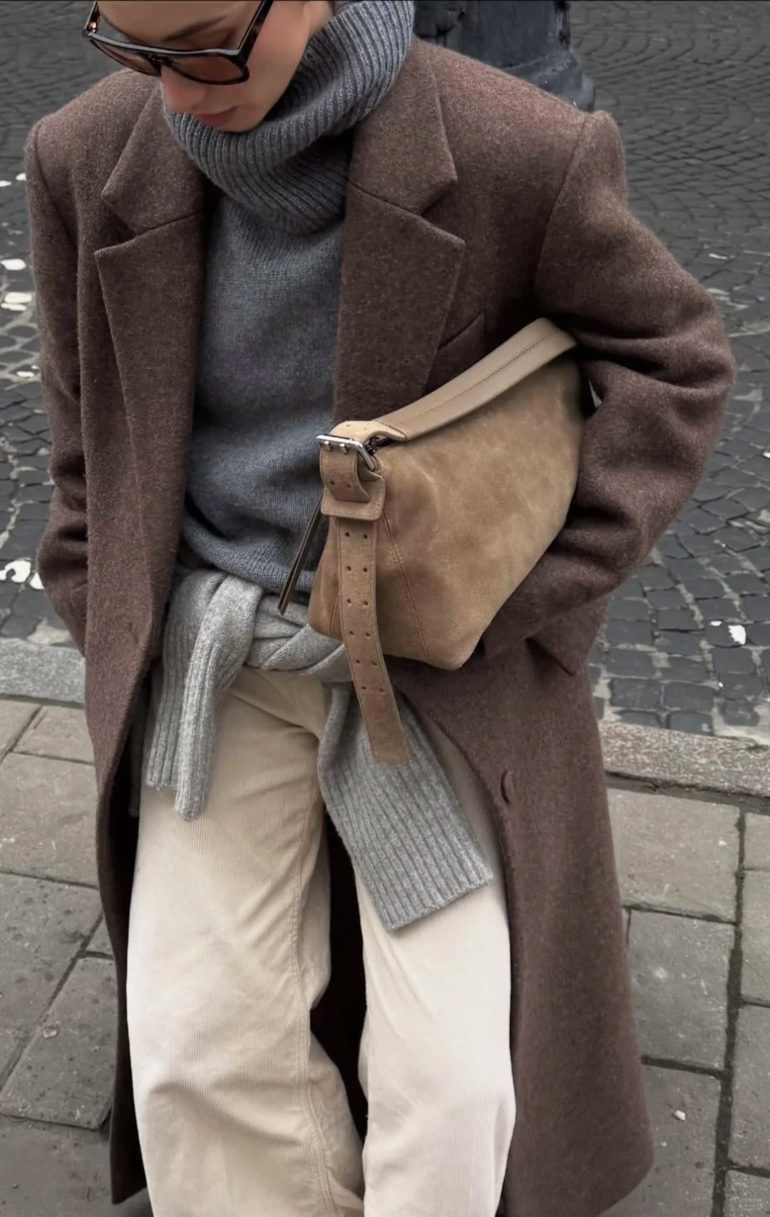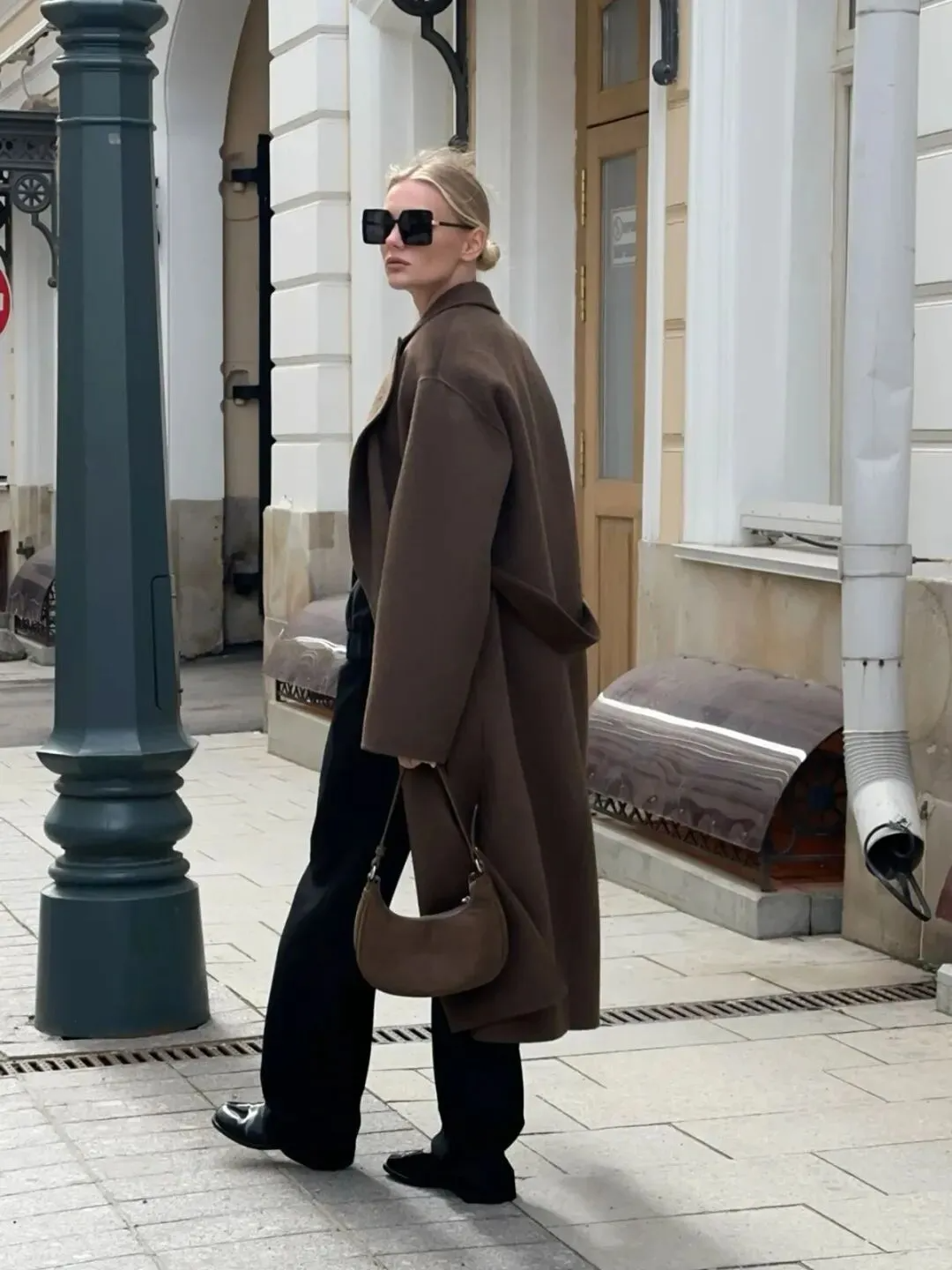 穿棕色大衣时拎一只同色系包包,这份不刻意的呼应,恰是 “低调时髦” 的精髓,把街头巷尾的烟火气,穿成了骨子里的高级感。