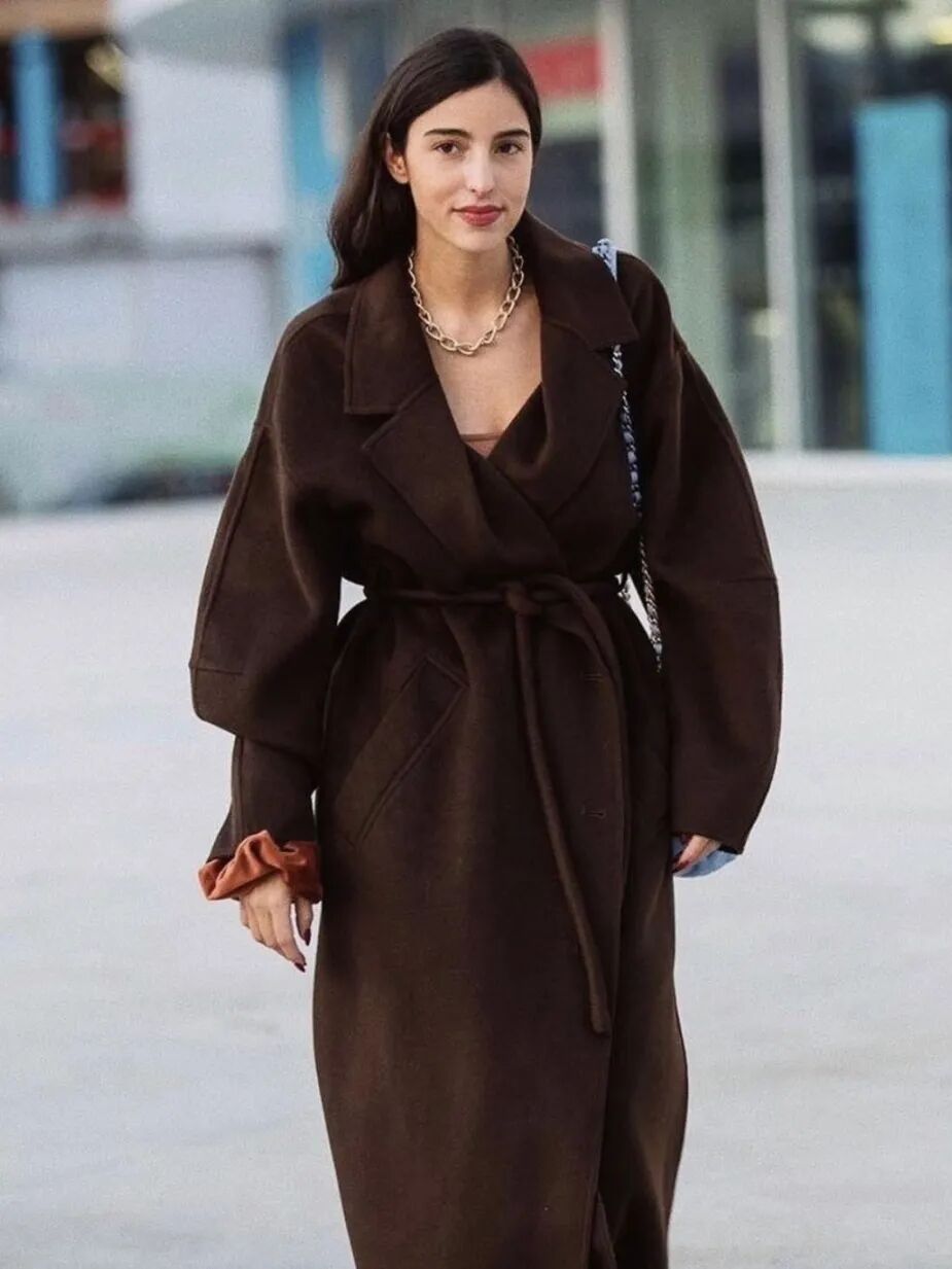 今年冬日的大衣主色调,注定被这抹棕承包。它不是深沉的巧克力棕,也不是浅淡的奶茶棕,而是带着糖壳焦香的、暖糯糯的糖炒栗子色。