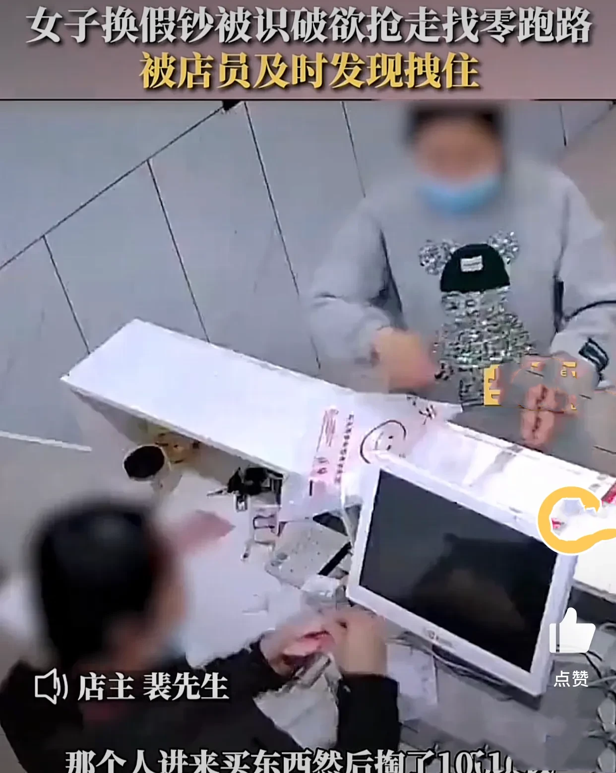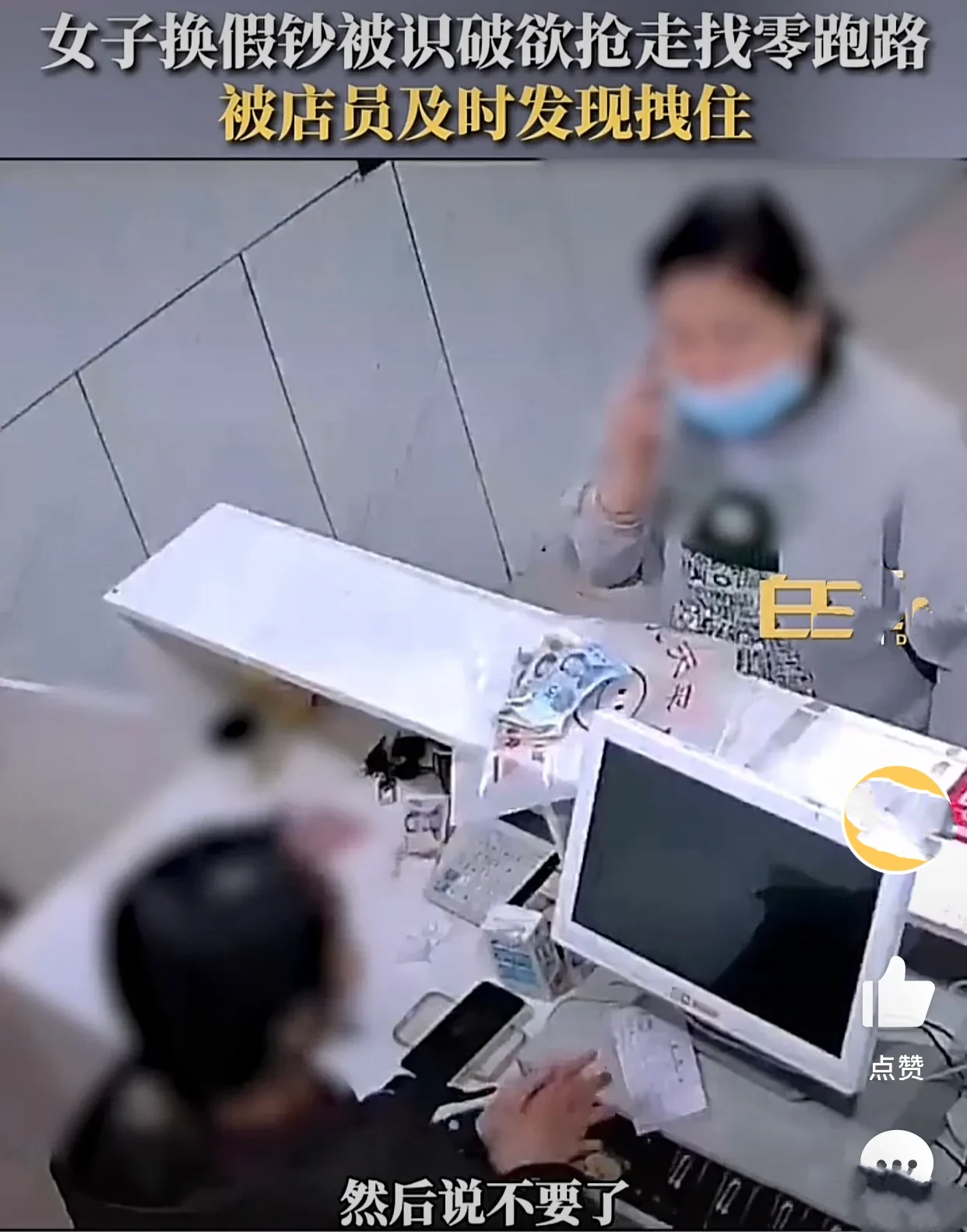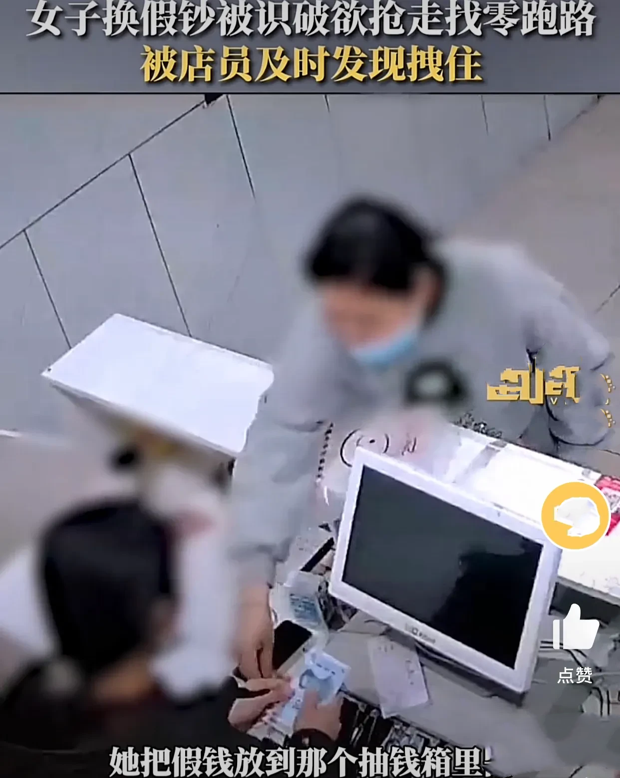 女顾客便利店使假币调包计,被警觉店员当场识破