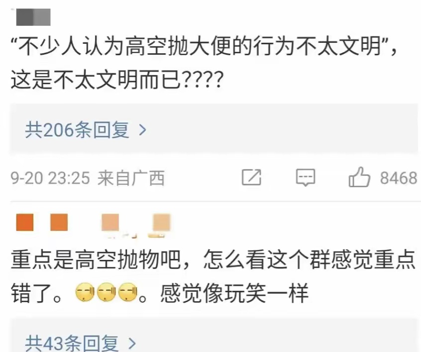 高空抛物真的是非常危险和不负责任的行为,不仅影响他人的生活,还可能造成伤害。更别说是“生化武器”了。大家都有责任维护小区的安全和环境。希望通过这样的事件,能够引起更多人对公共安全的关注,大家都能共同努力,创造一个更安全的居住环境!
