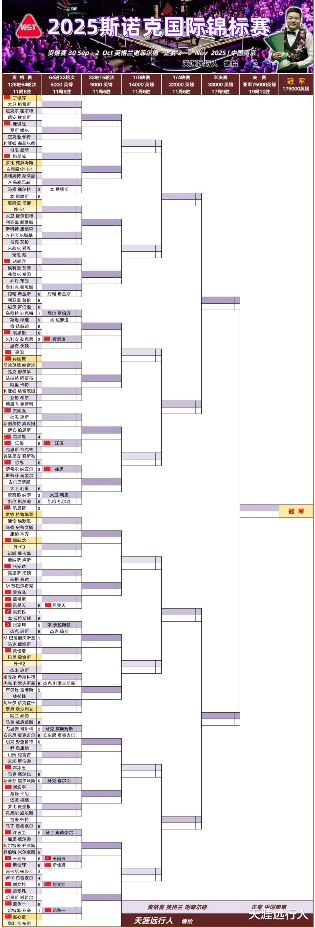 最新即时更新2025斯诺克国际锦标赛进程签表